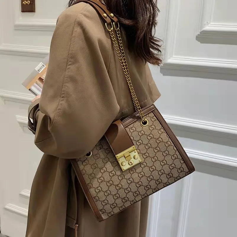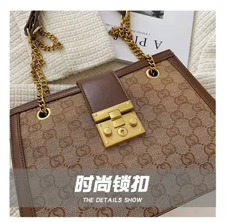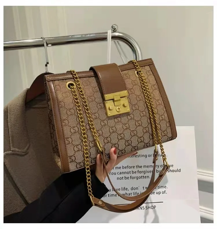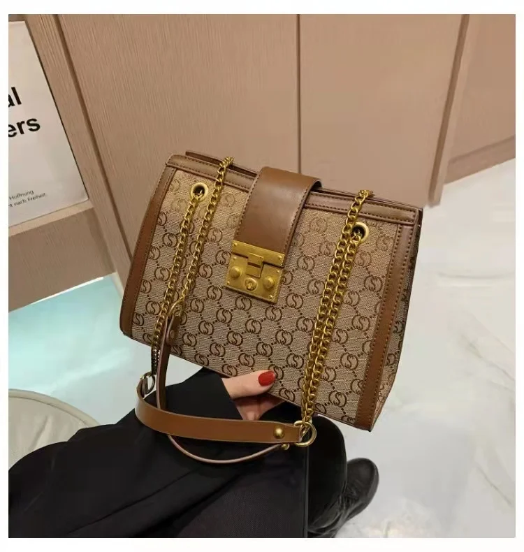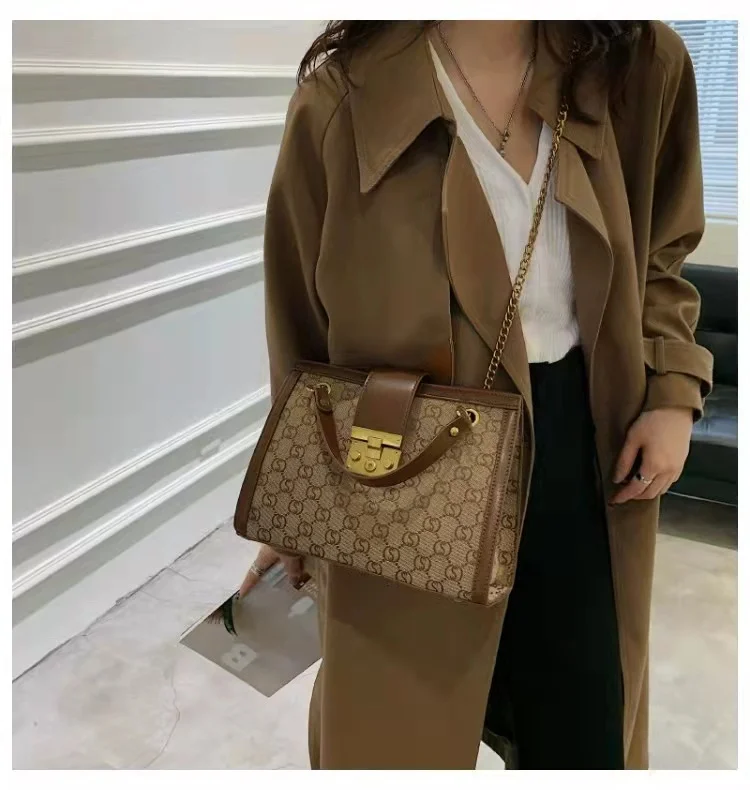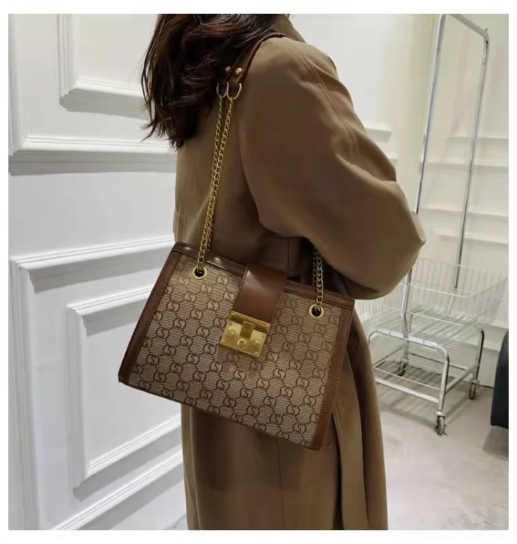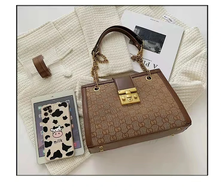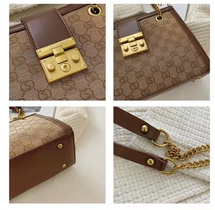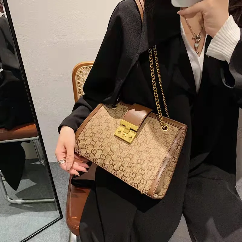 Luxury metal chain small square bag with metal buckle fashion all-match shoulder bag