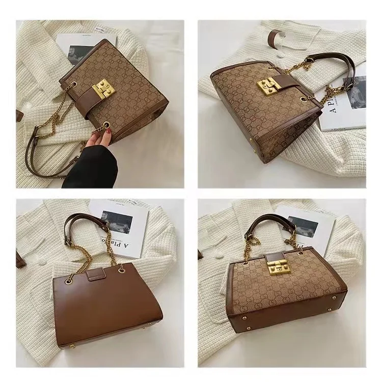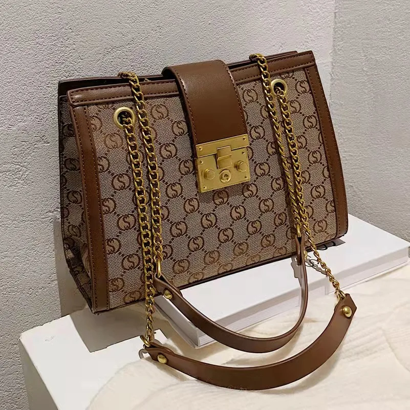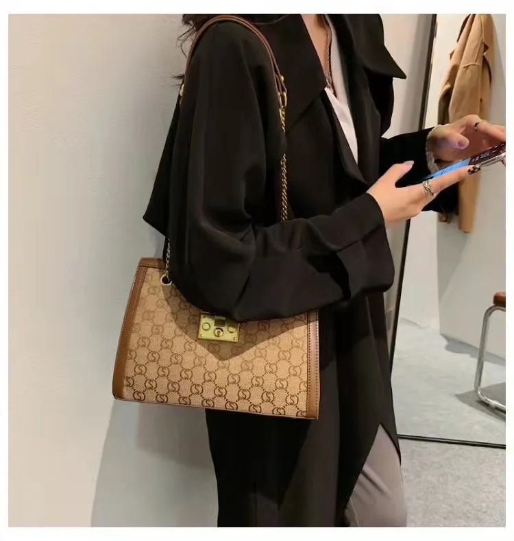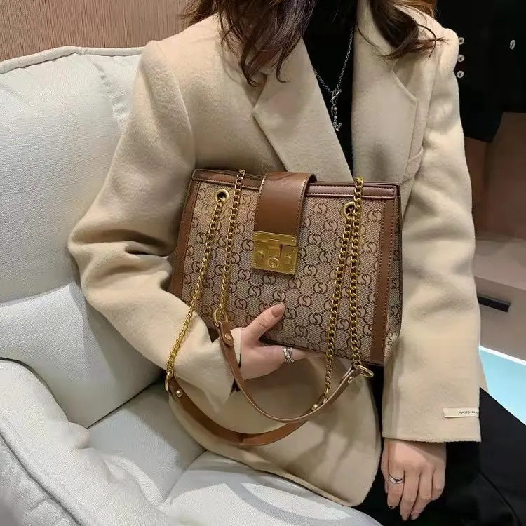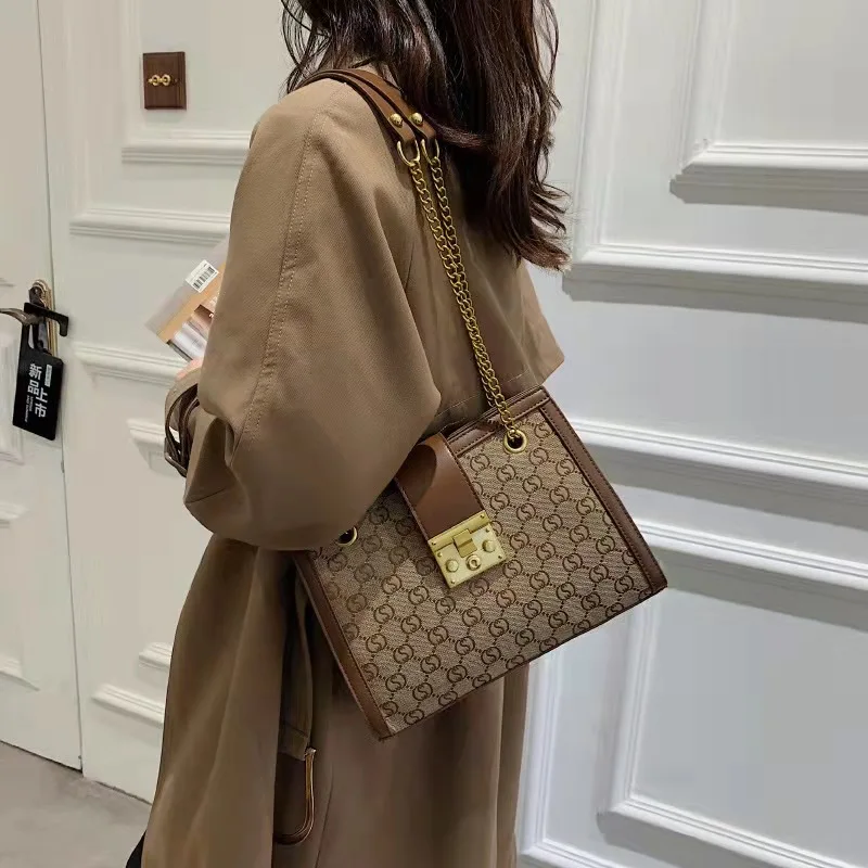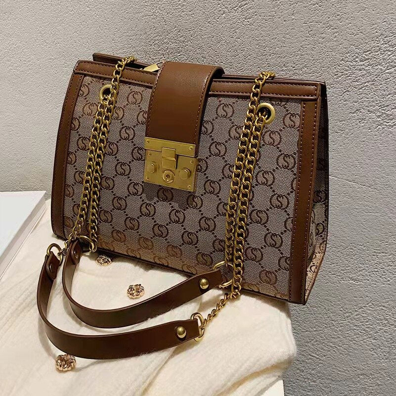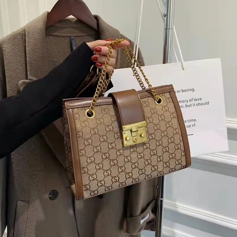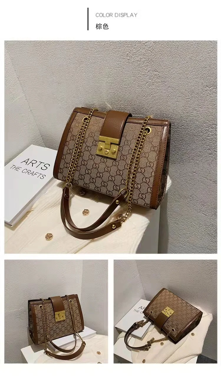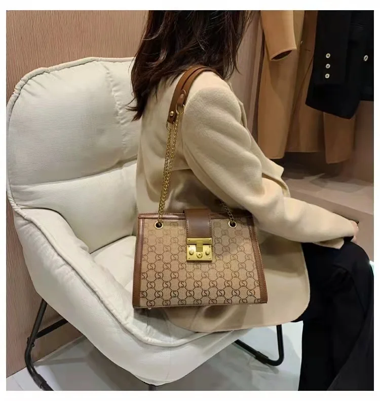 Luxury metal chain small square bag with metal buckle fashion all-match shoulder bag