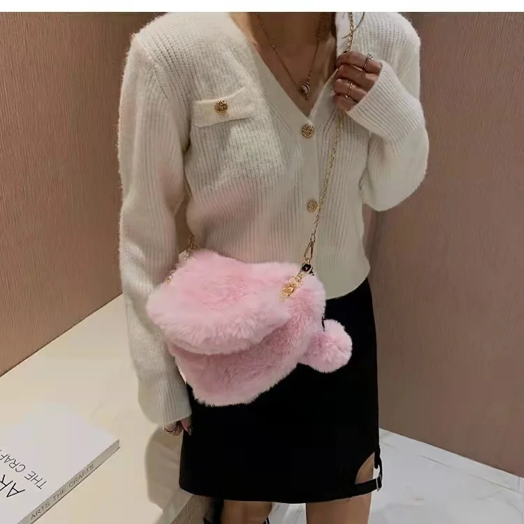 Luxury new plush niche chain shoulder messenger fashion plush bag
