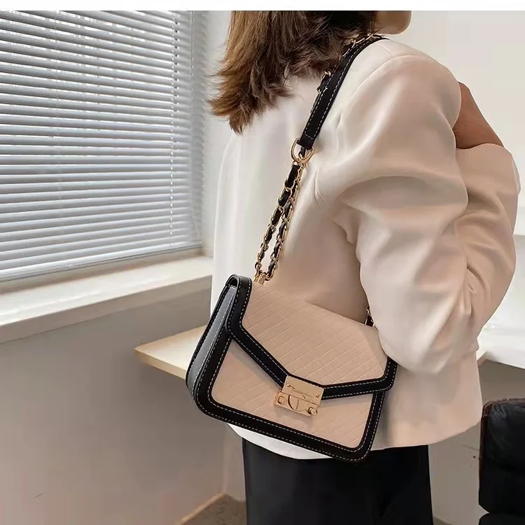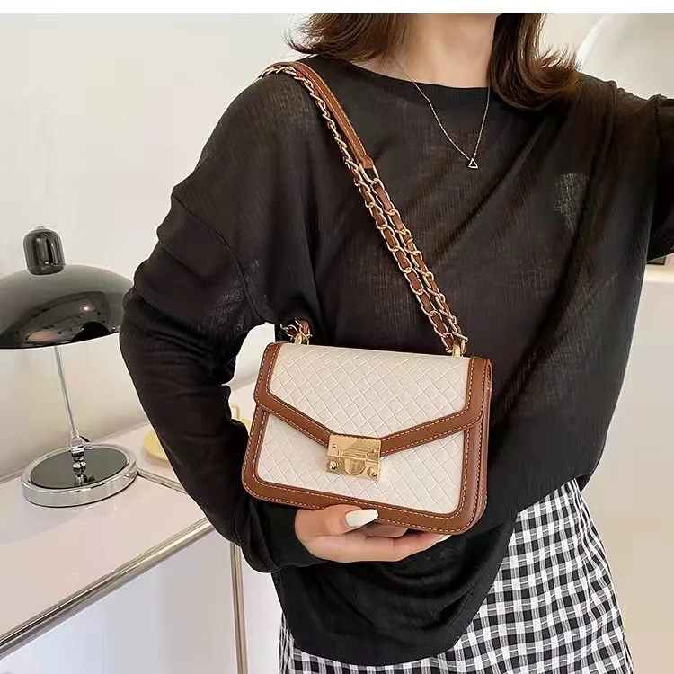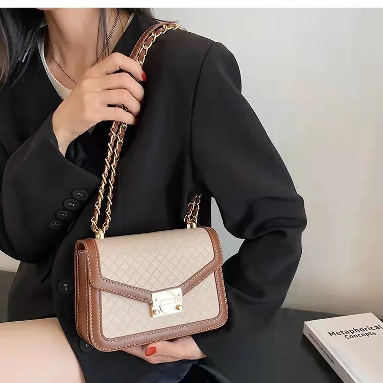 Luxury niche design contrast color western diamond embossed chain one-shoulder messenger handbag