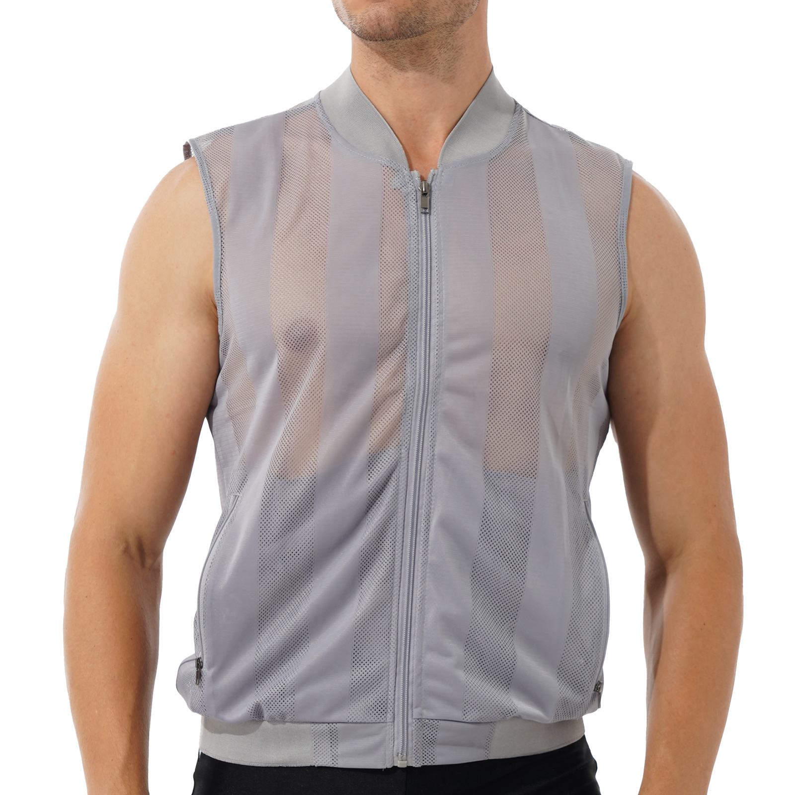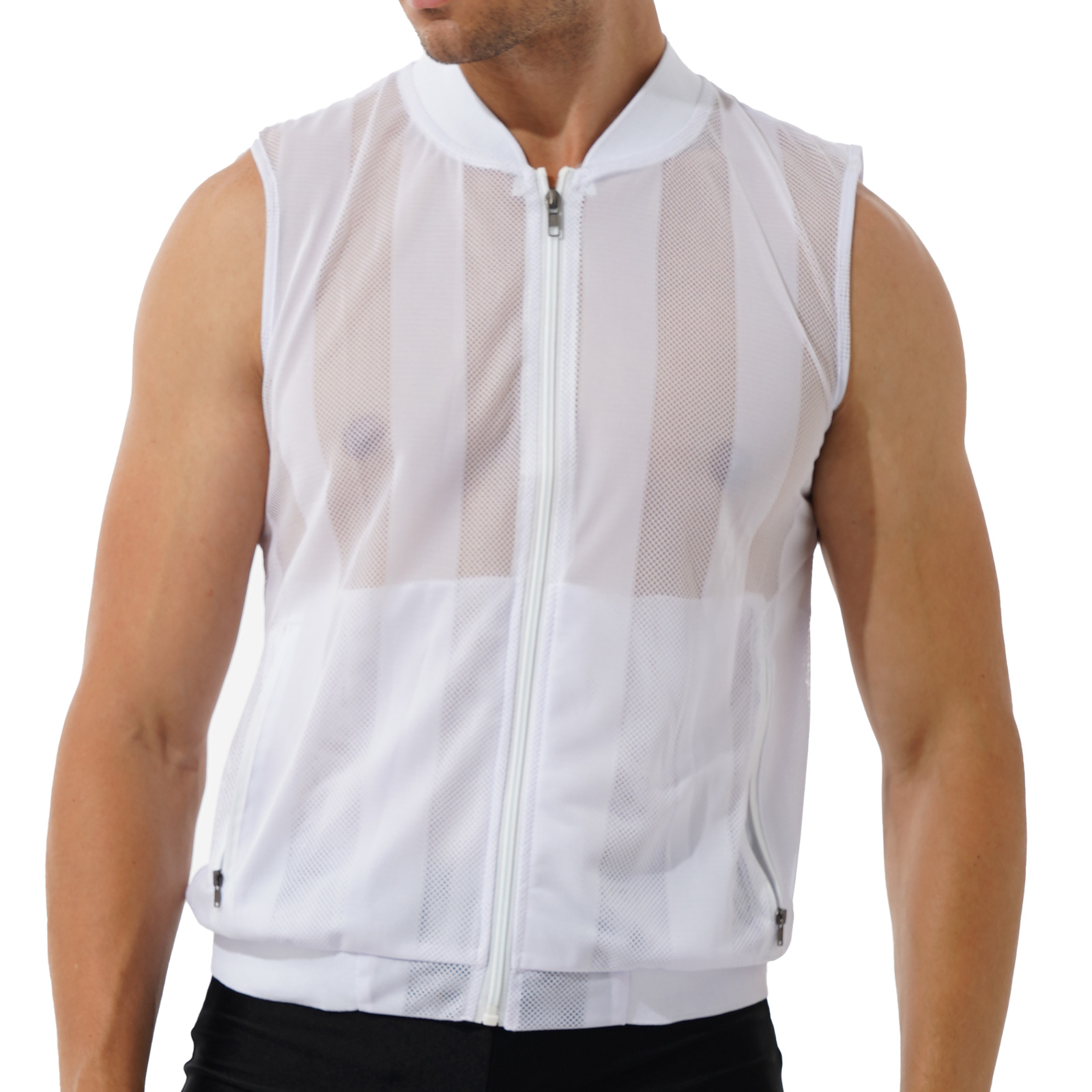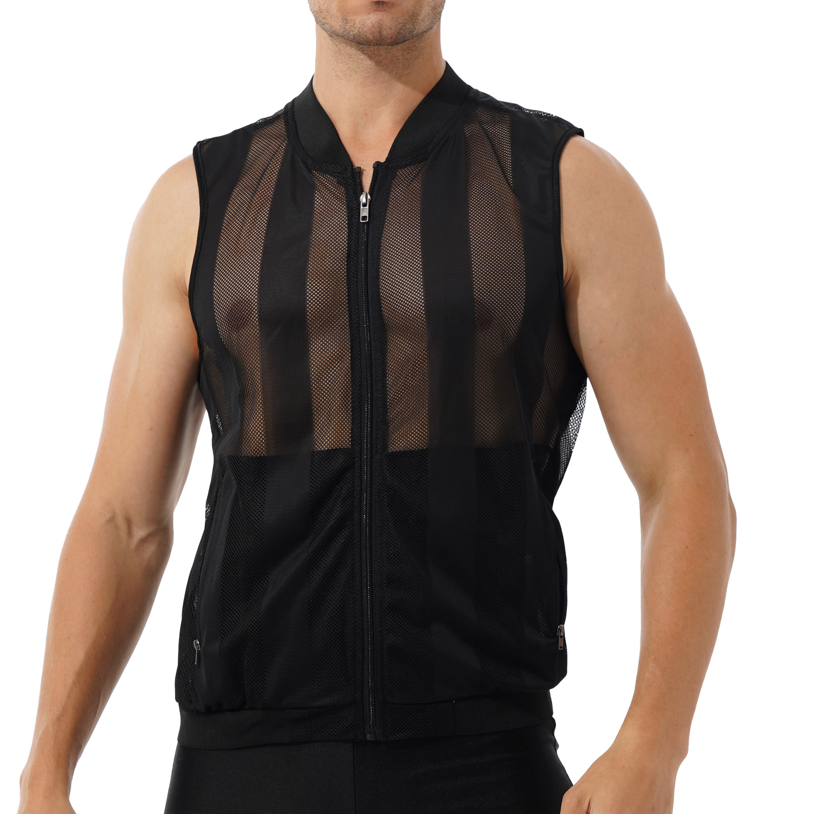 Men See-through Mesh Sleeveless Jacket Outdoor Golf Fishing Travel Waistcoat Zipper Front Vest.