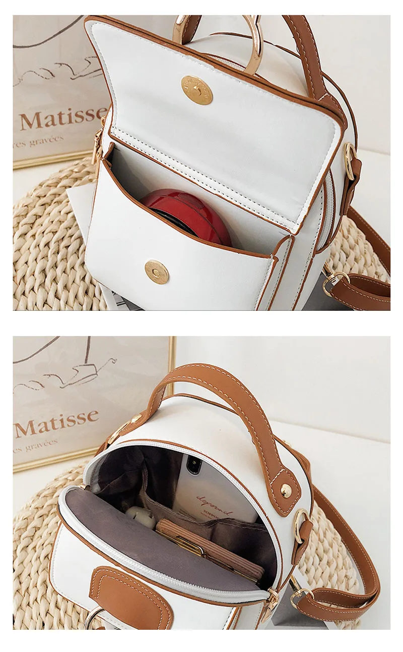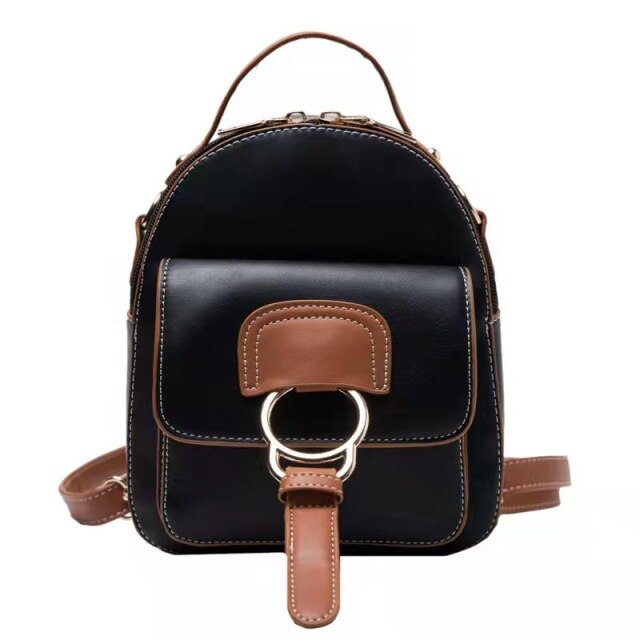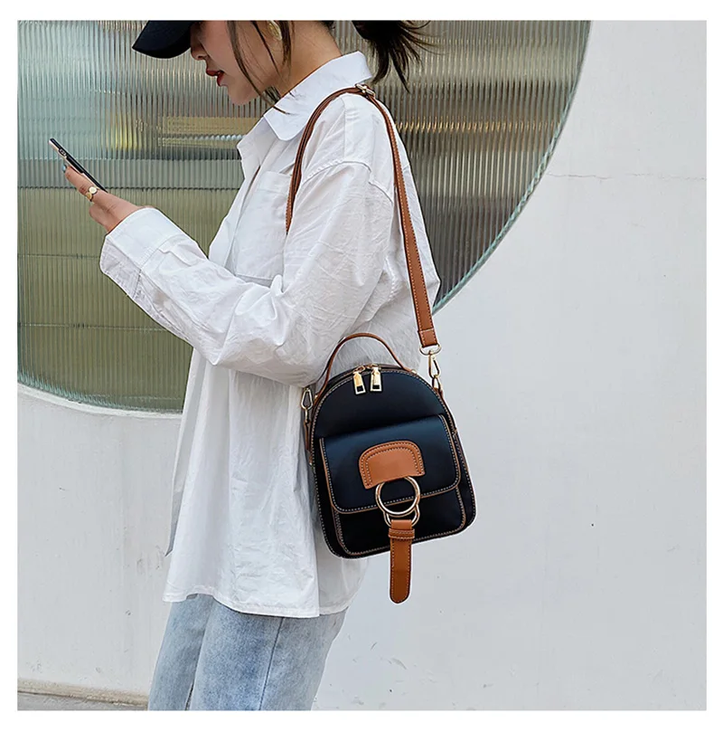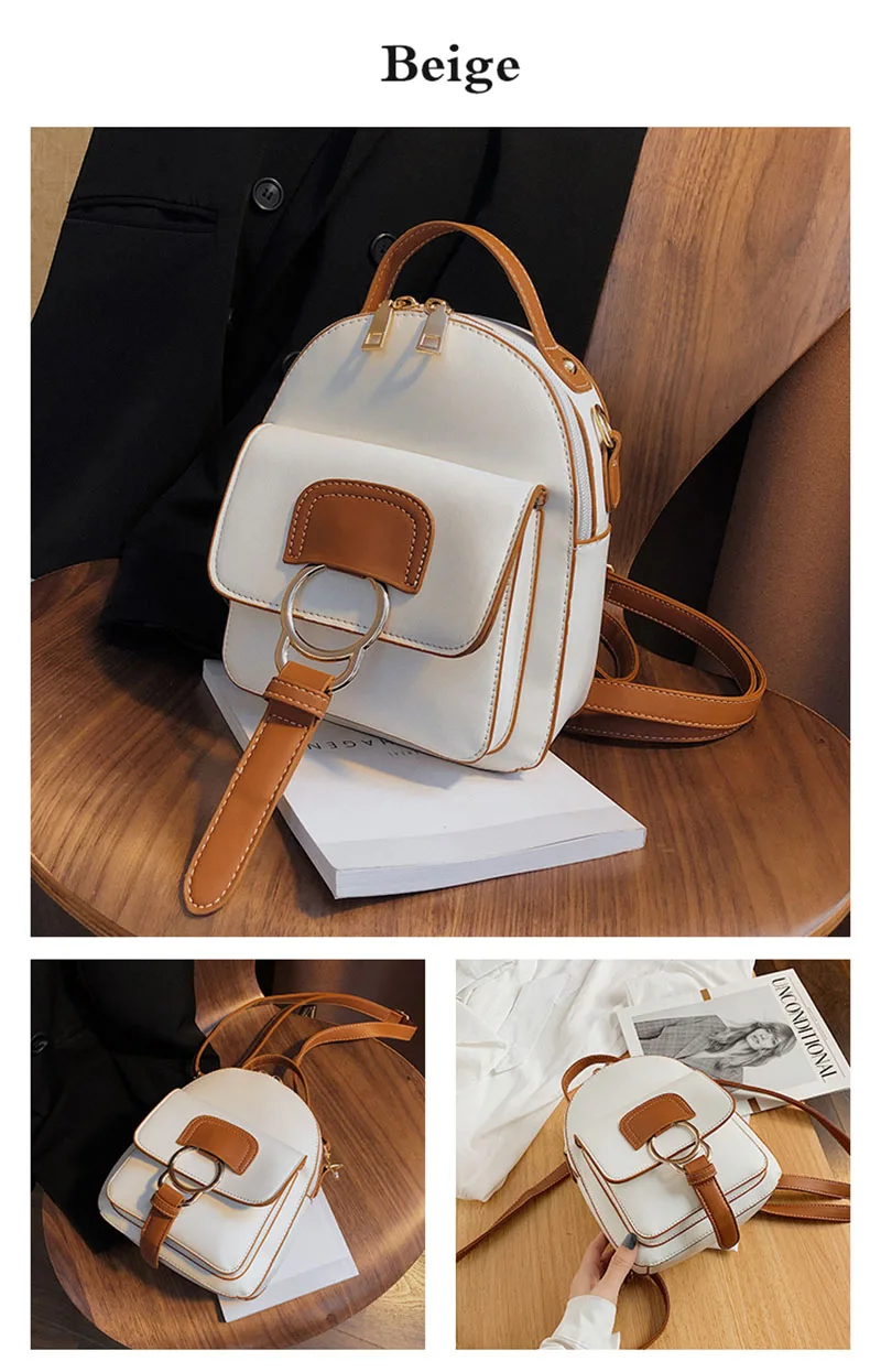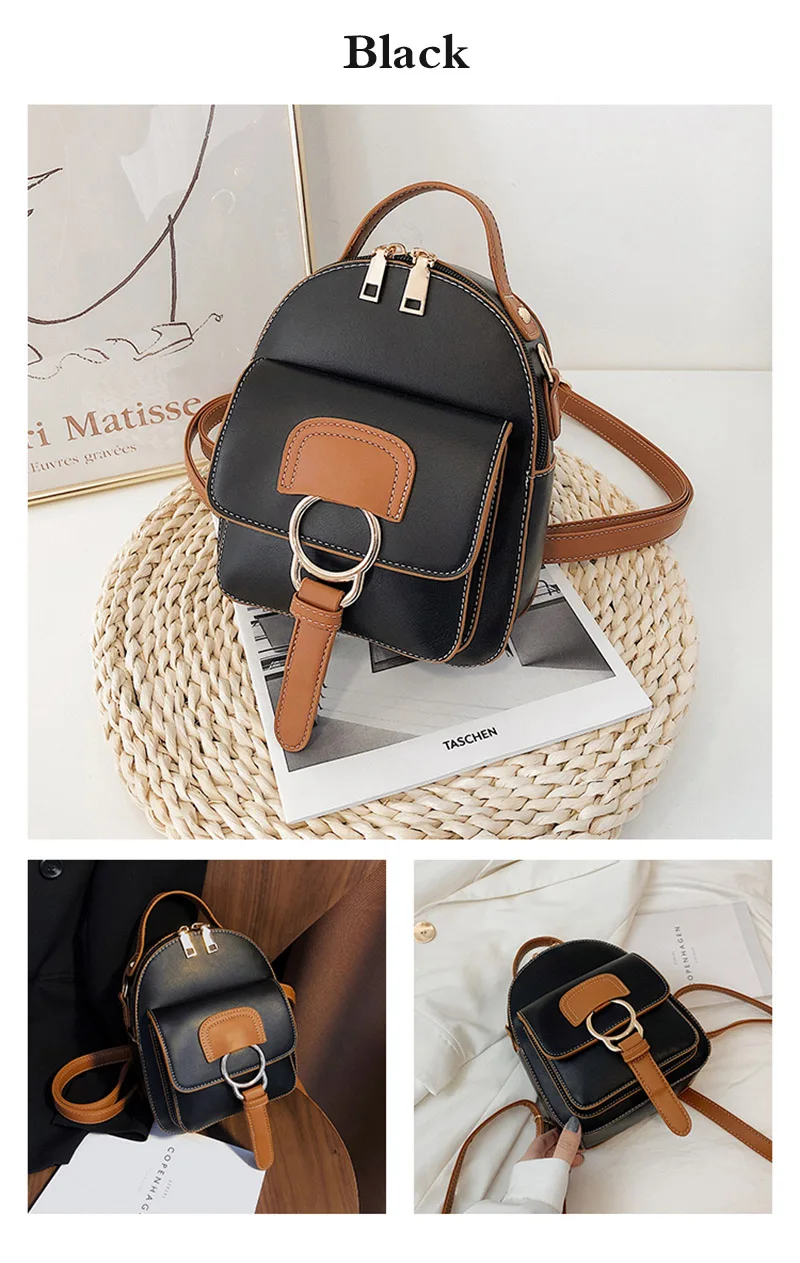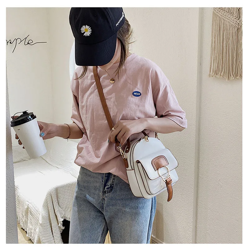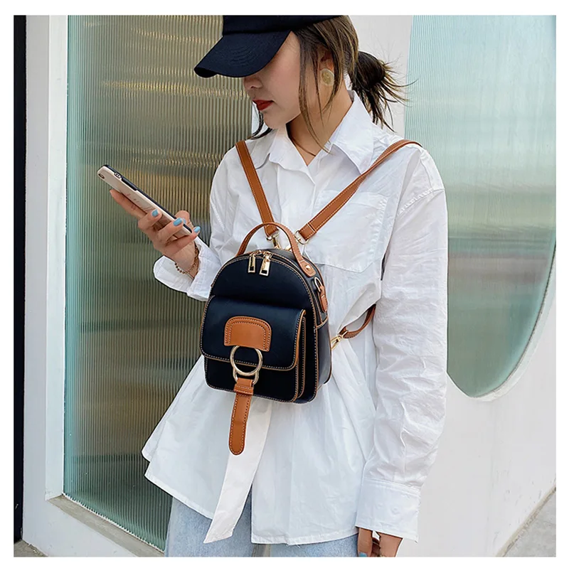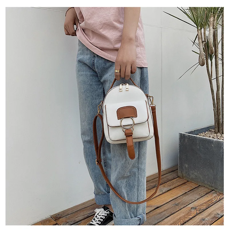 Mochila pequena feminina de couro artificial, nova bolsa de ombro da moda em couro ecológico, versão coreana, mochila universitá