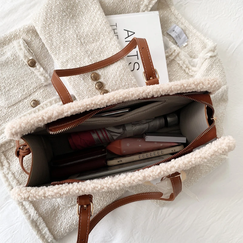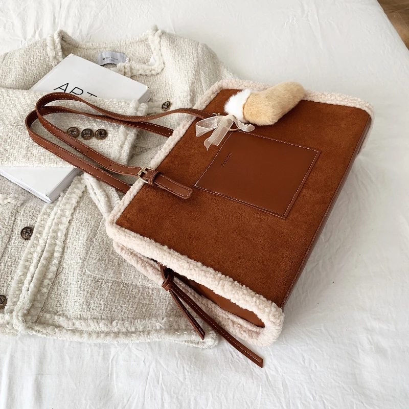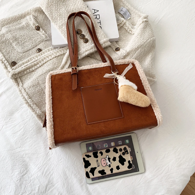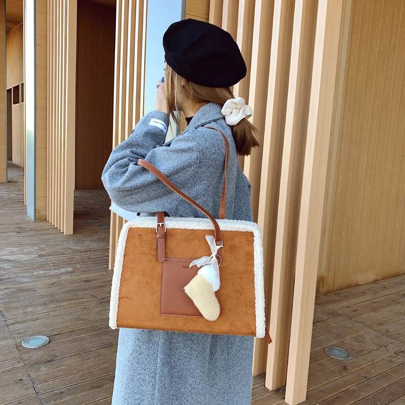 New Quilted Handbag Female Big Kawaii Totes High Quality Ladies Square Shoulder Soft Vintage Kawaii Tote Bag 2022 Winter Fashion