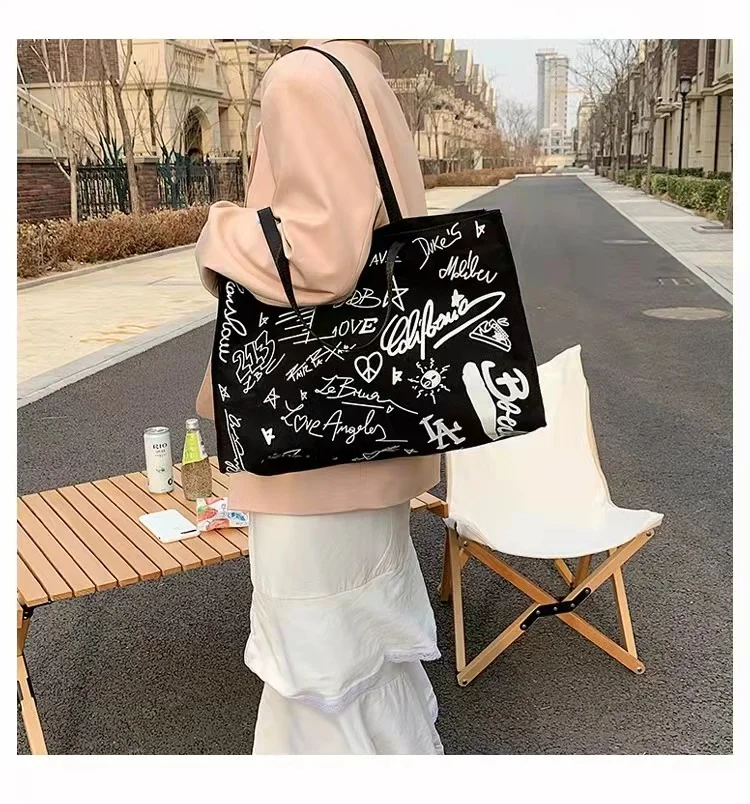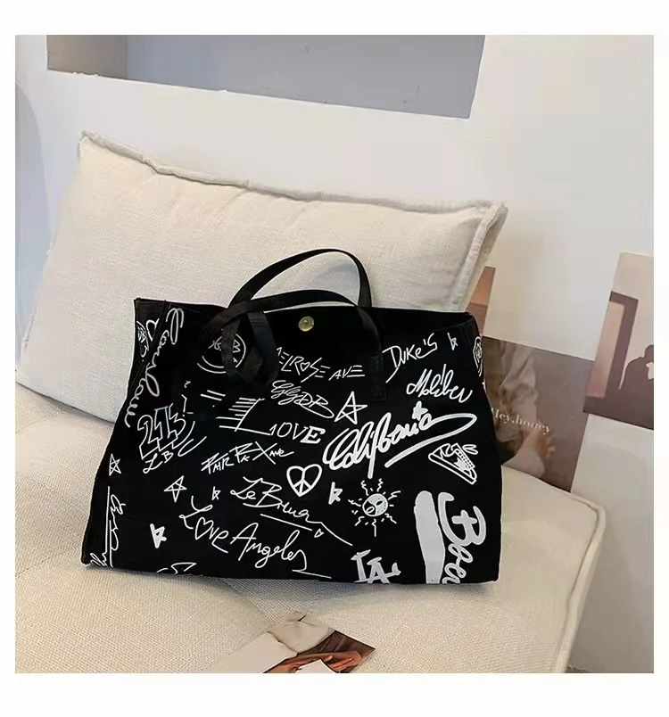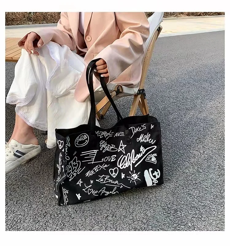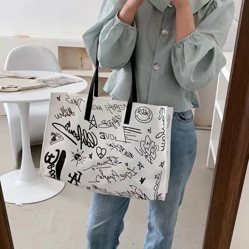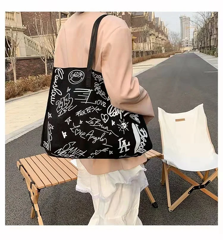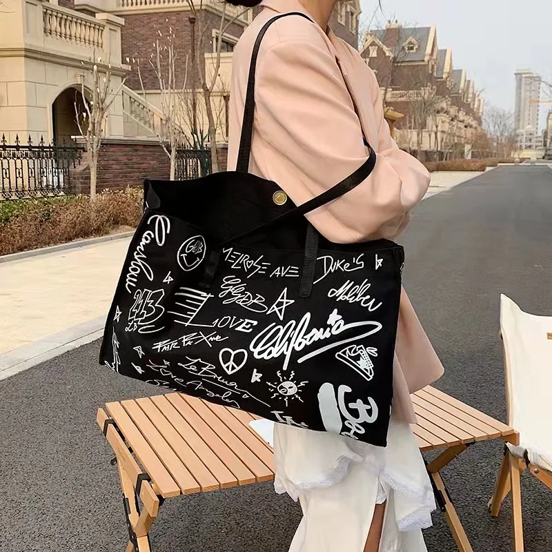 New style simple canvas fashion western style graffiti ladies single shoulder bag