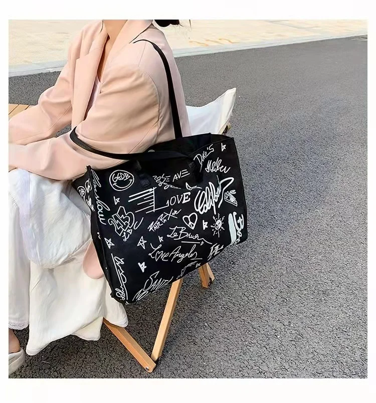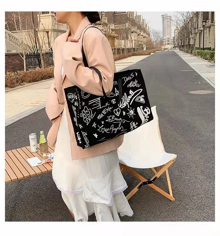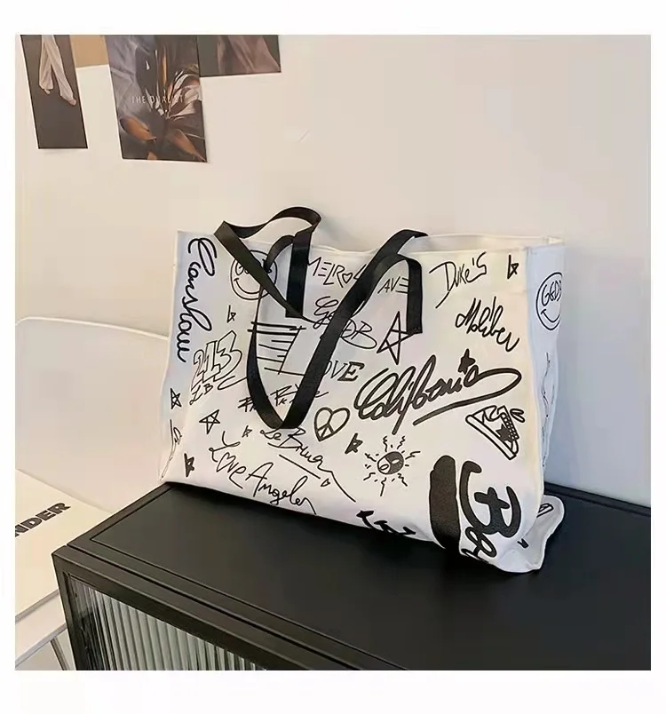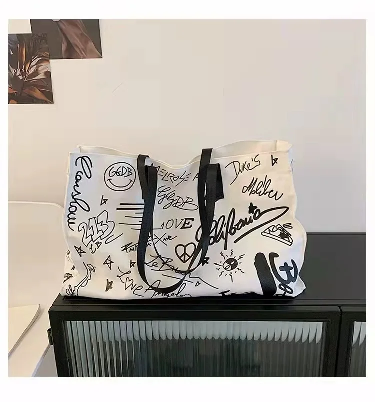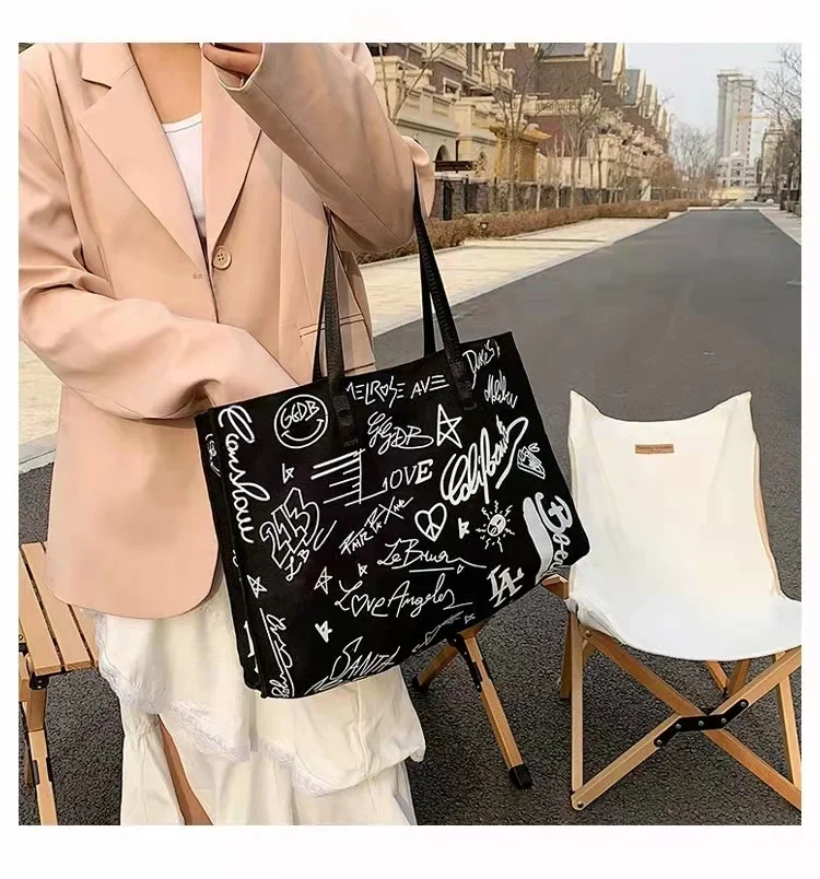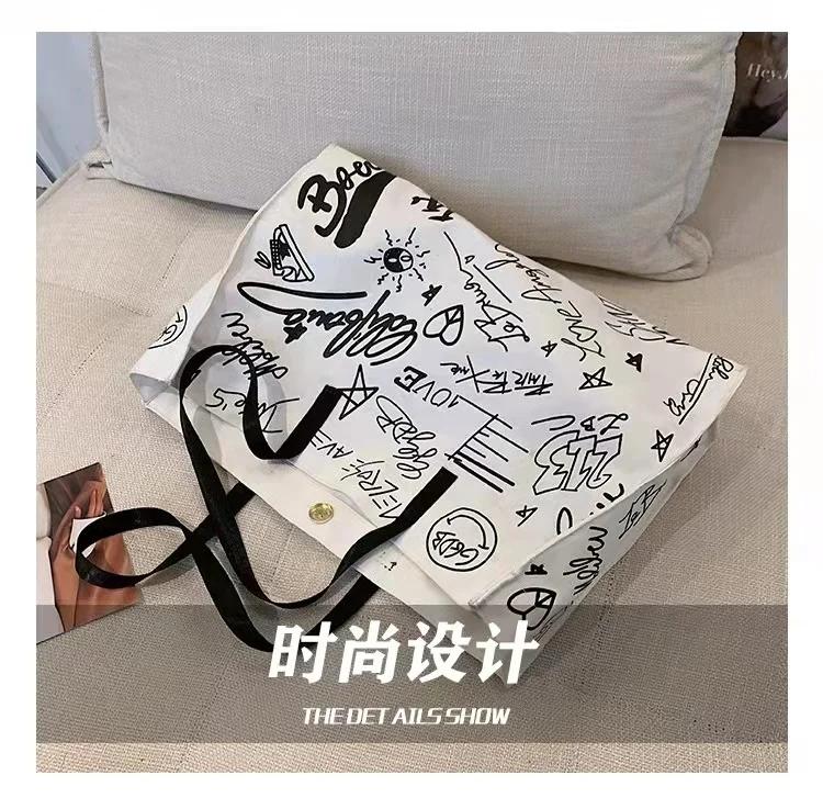 New style simple canvas fashion western style graffiti ladies single shoulder bag