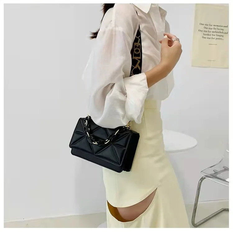 New trendy shoulder bag chain casual simple handbag fashion thick chain small square bag