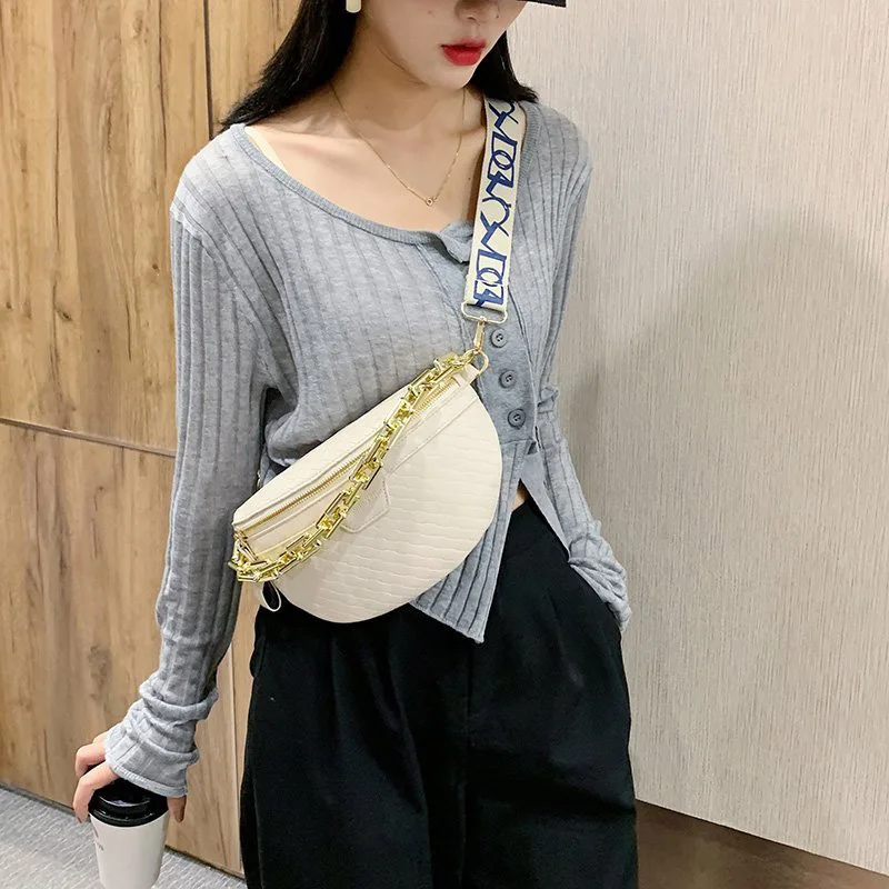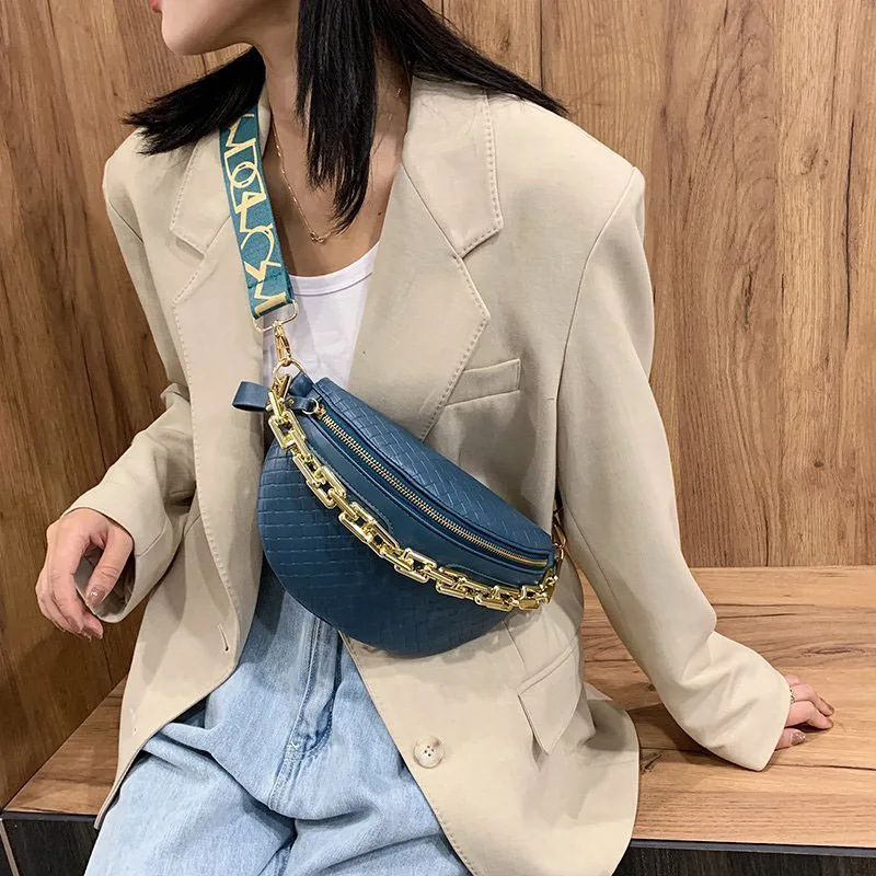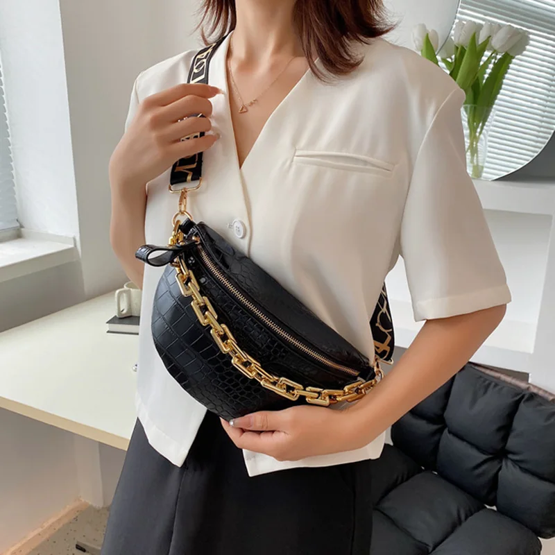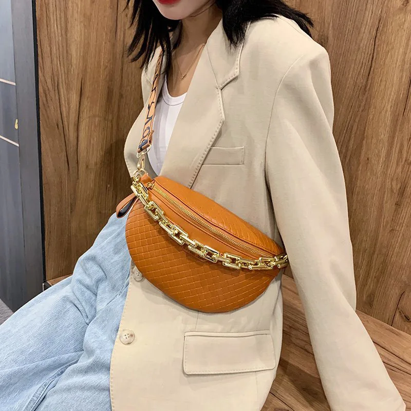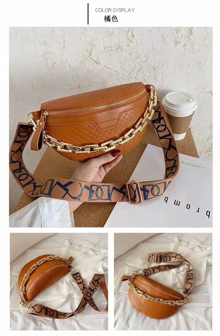 Pochete feminina de couro artificial, bolsa de cintura transversal de ombro, peito para viagem