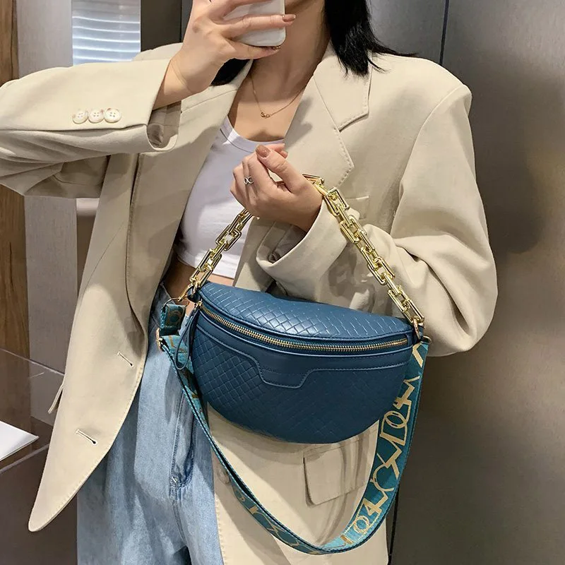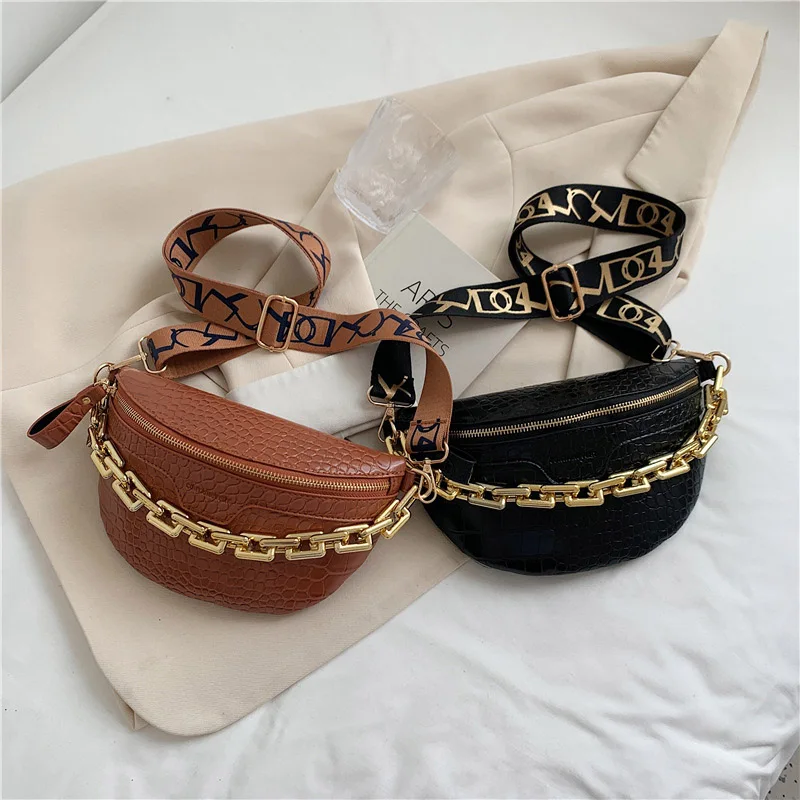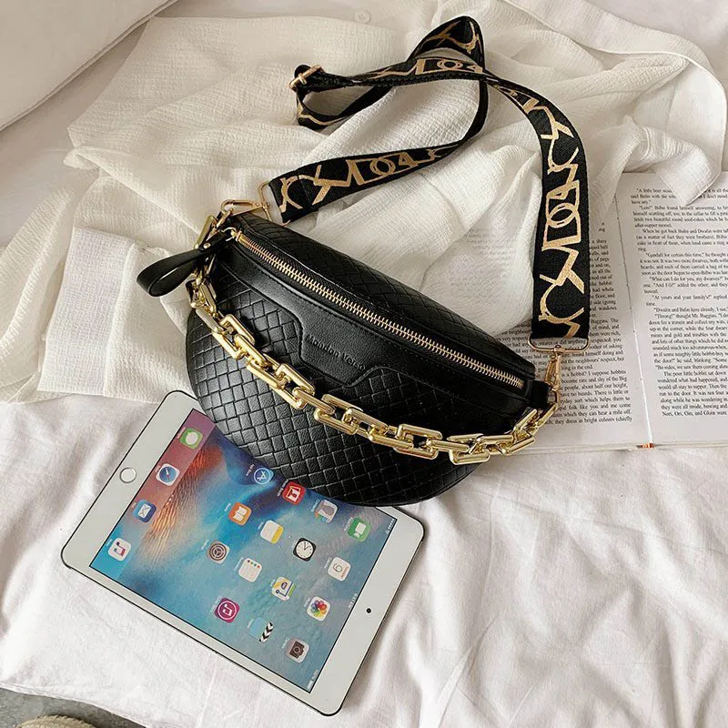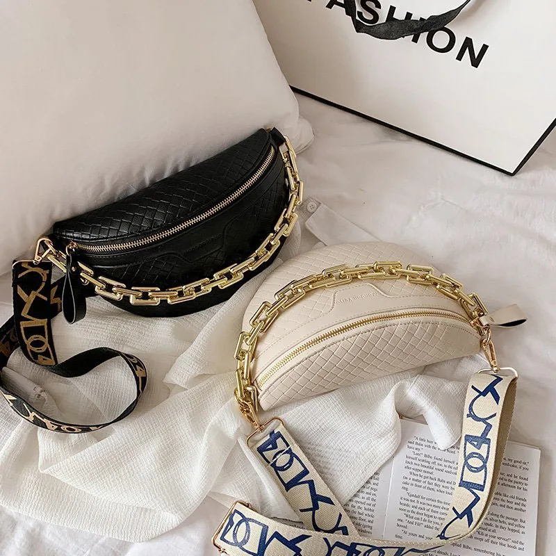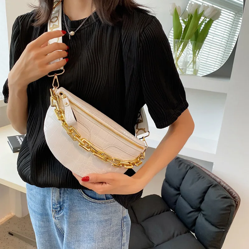 Pochete feminina de couro artificial, bolsa de cintura transversal de ombro, peito para viagem