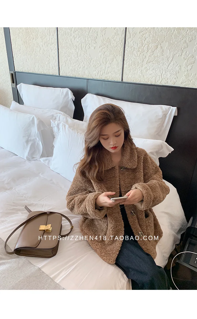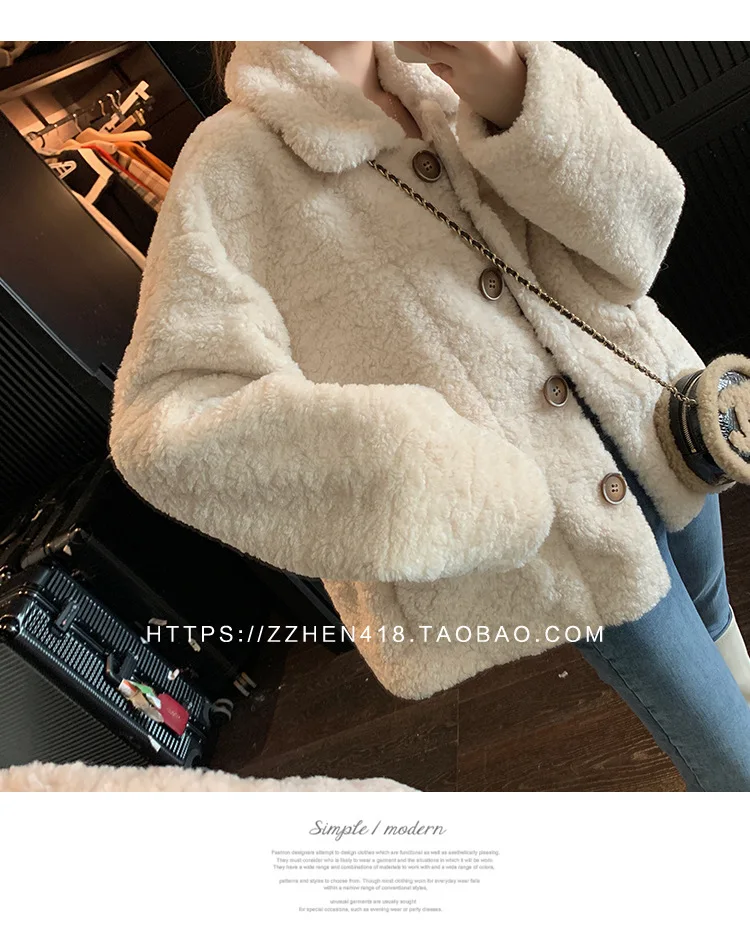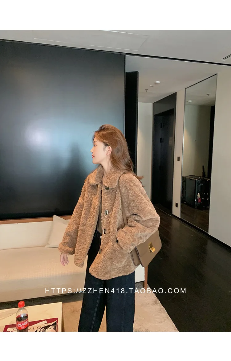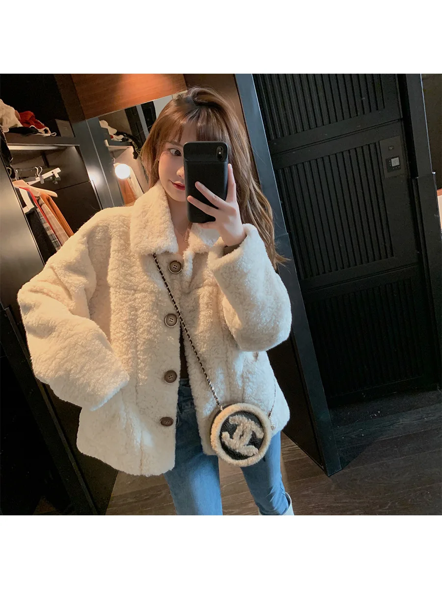 Retro Short Lamb Wool Coat Female Autumn and Winter New Plush Coat All-match jacket Single-breasted Casual Female Outwear