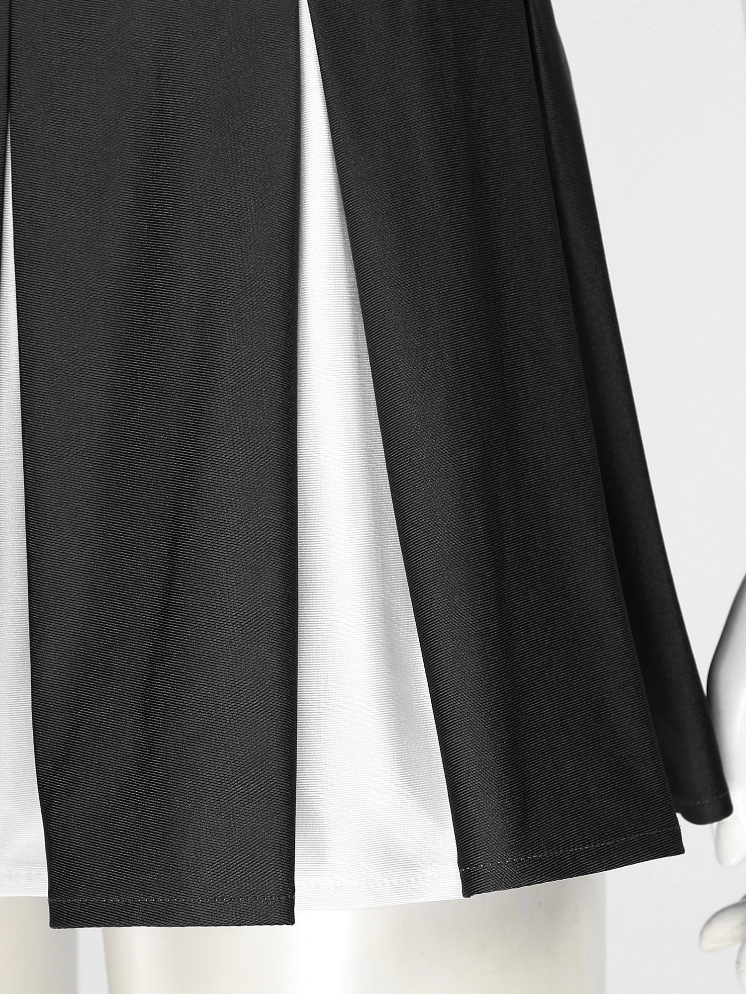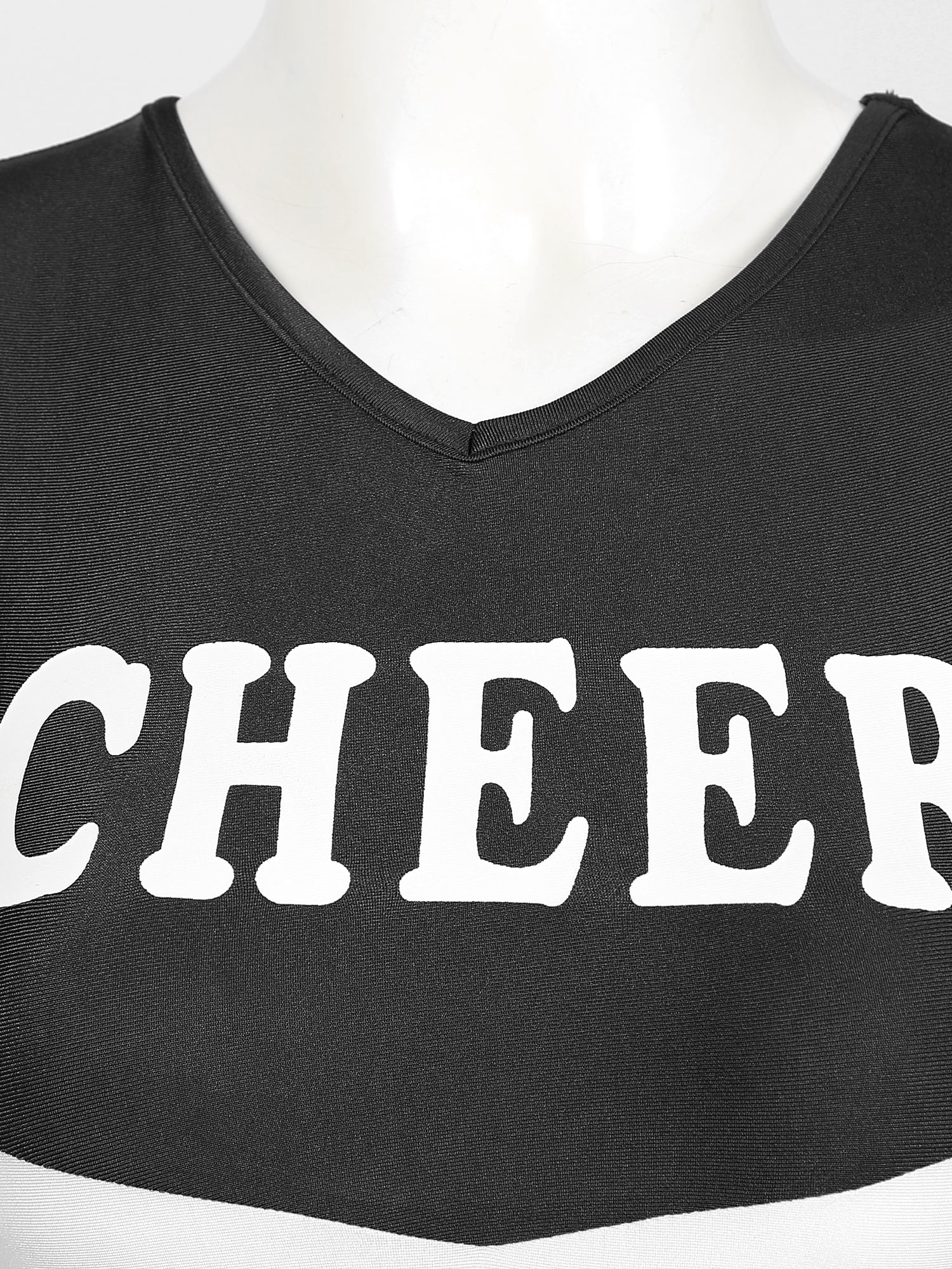 Womens Schoolgirl Cheerleading Outfit Letter Printed V Neck Crop Top with Pleated Skirt.