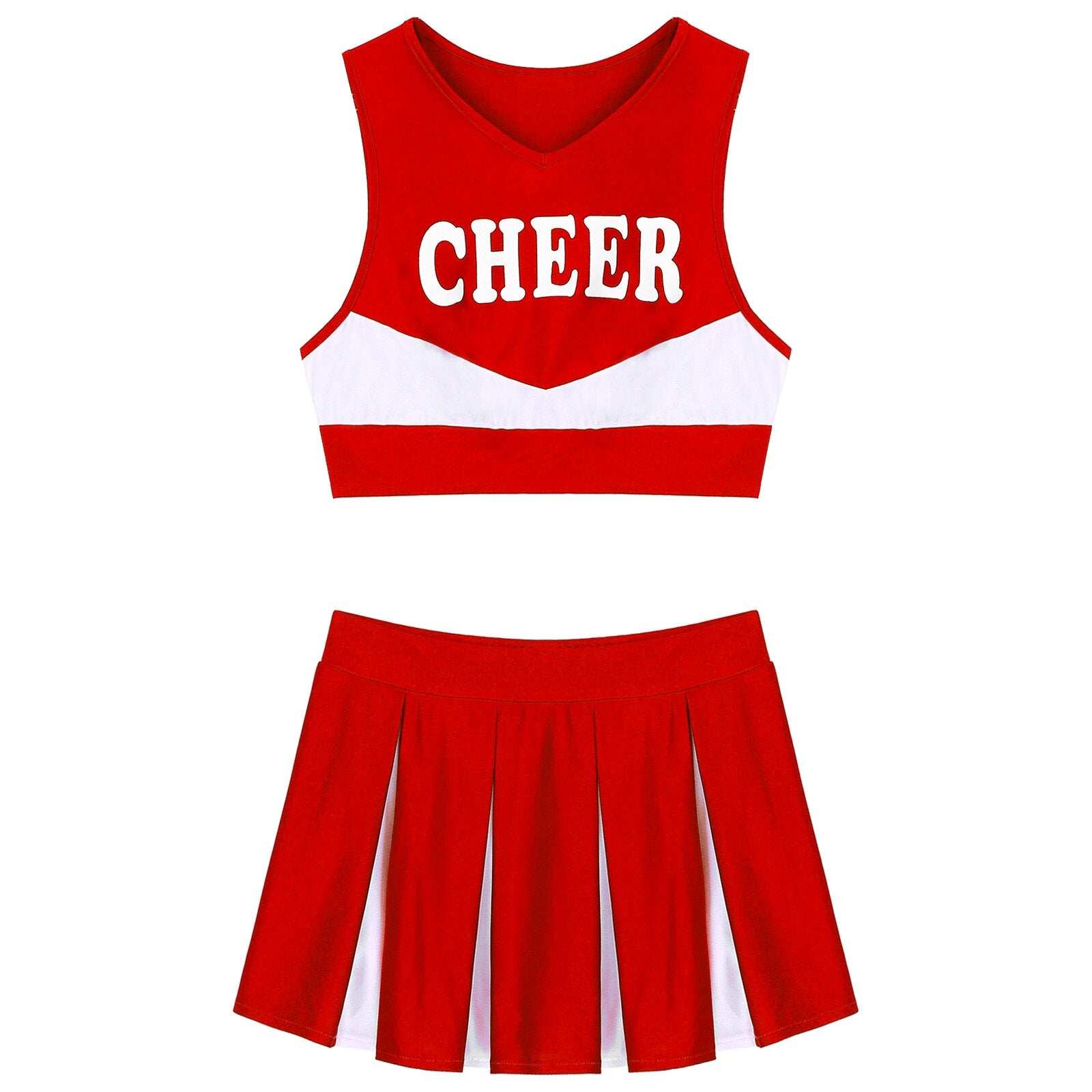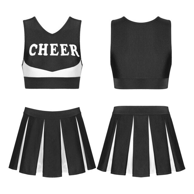 S-XL WomenCheerleading Outfit Schoolgirl Cosplay Letter Printe Sleeveless Crop Top with Pleated Skirt Sports Competition Costume