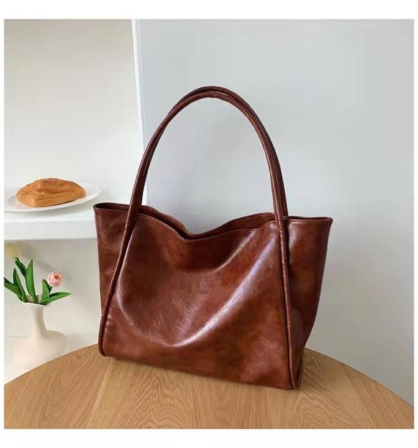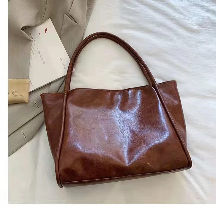 Soft surface large-capacity women's bag new western style retro simple shoulder bag commuter leisure tote bag
