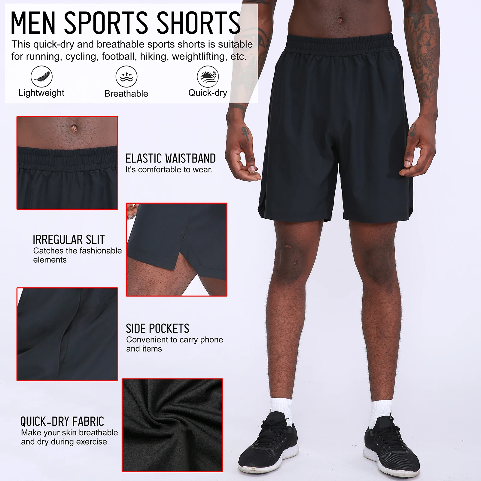 Made of polyester, these sports shorts are breathable and quick-drying. They feature elastic waist, side pockets and slit design. These sports shorts fit for home, running, weightlifting, gym, etc.