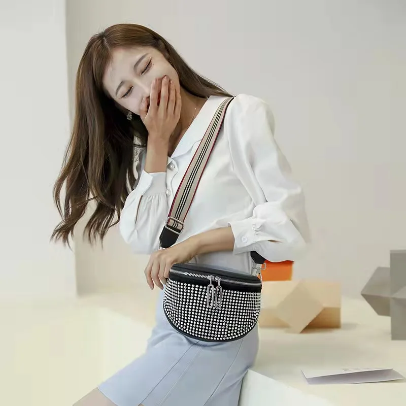 The new shiny rhinestone trend fashion simple western style one-shoulder diagonal bag
