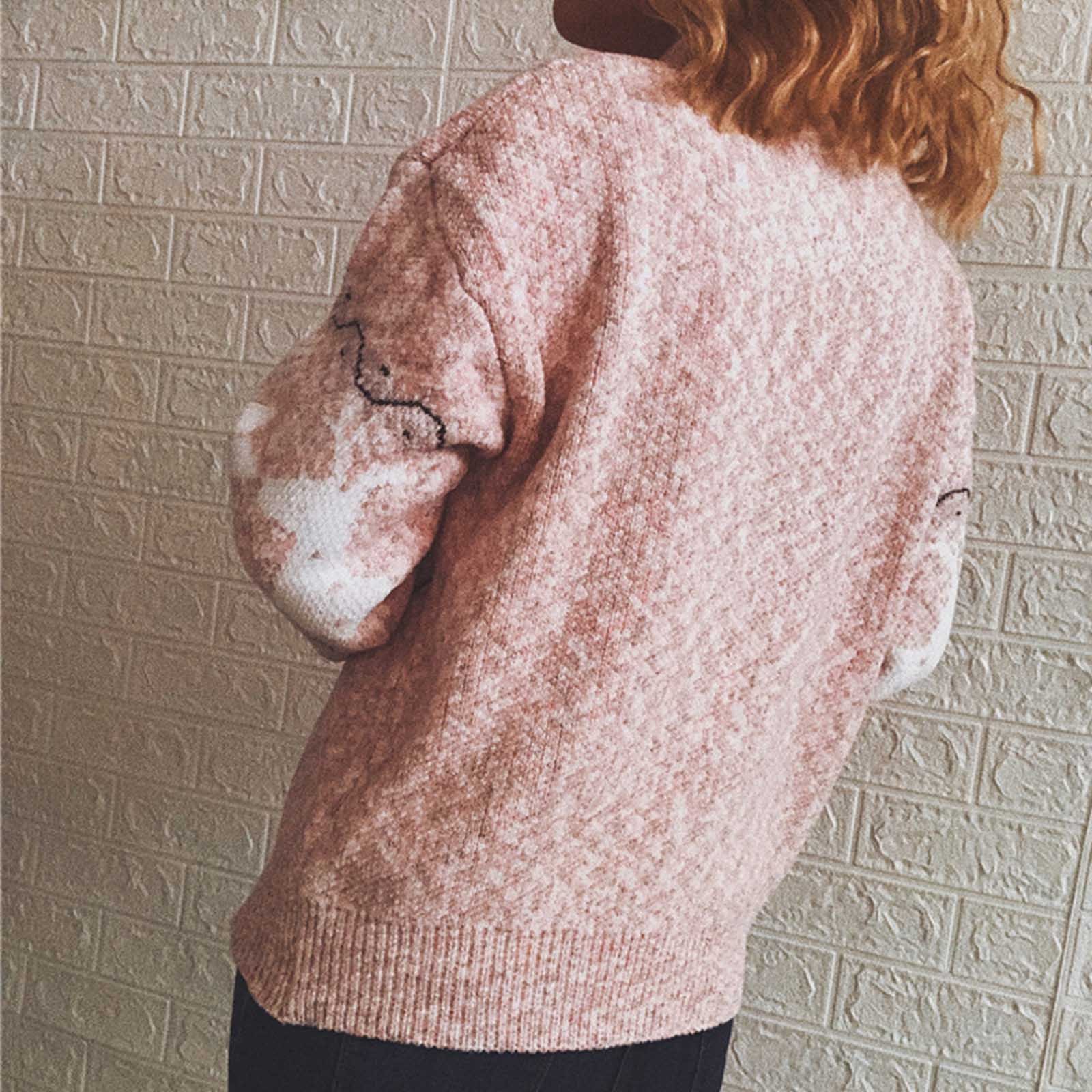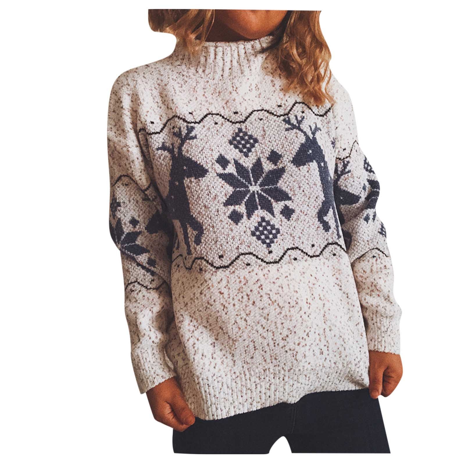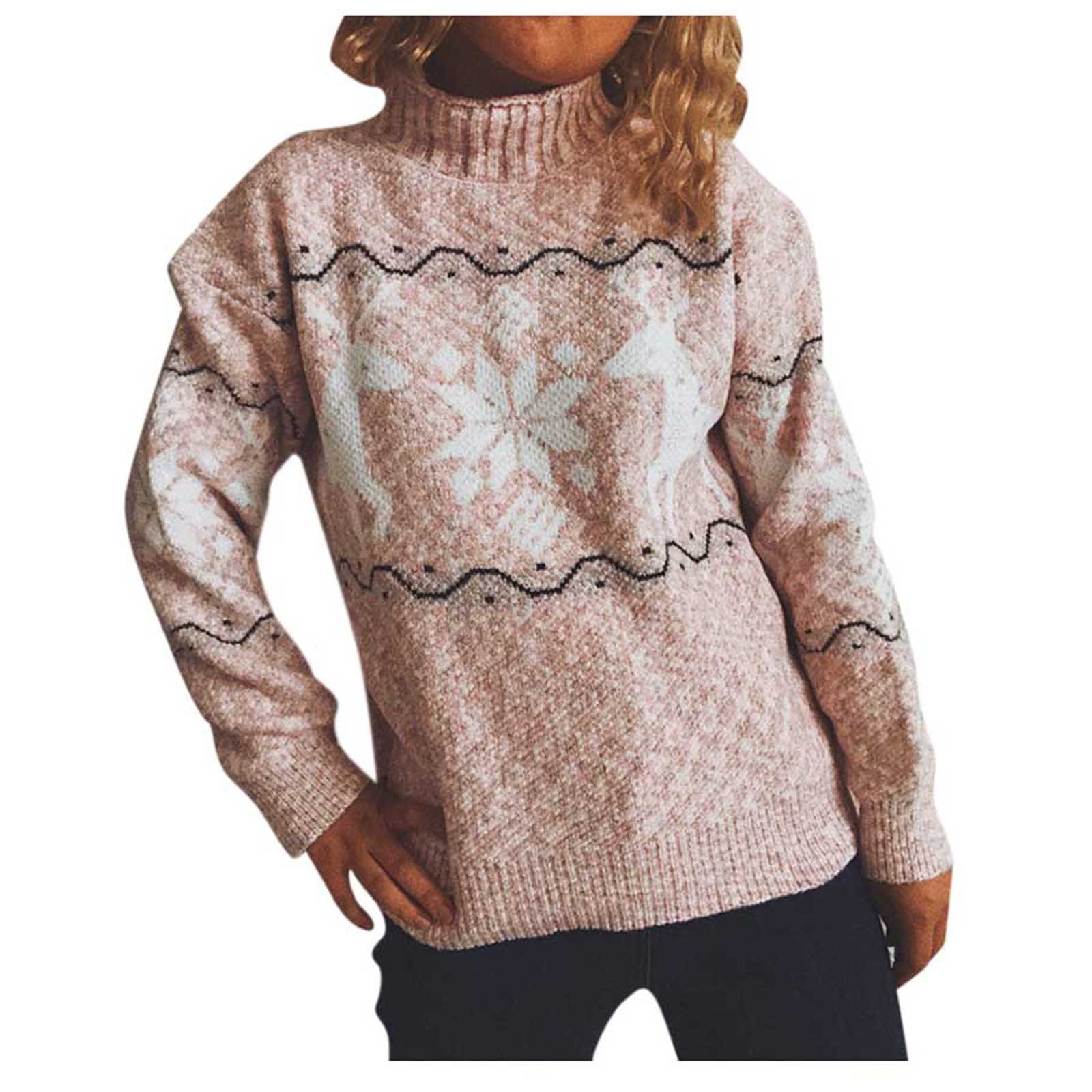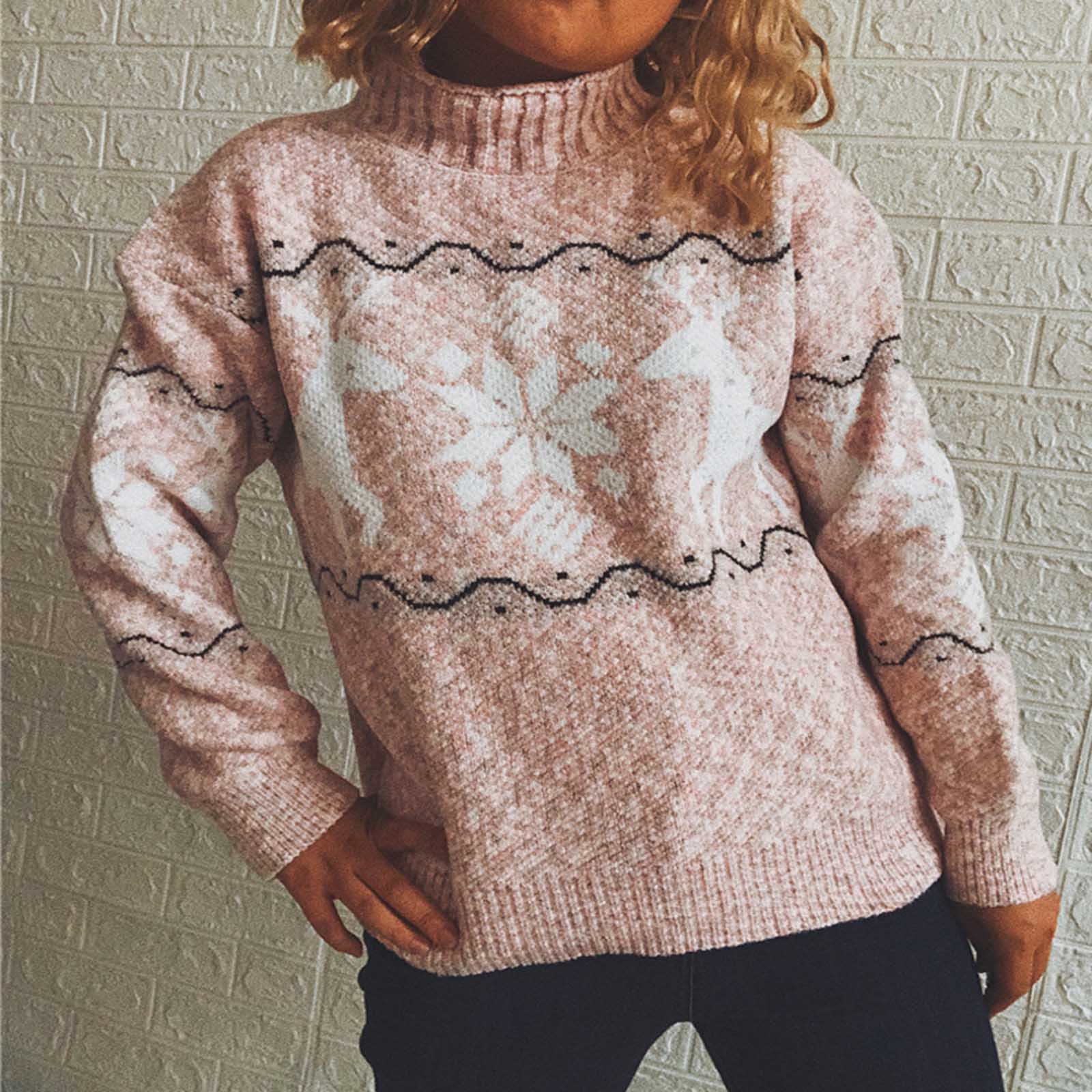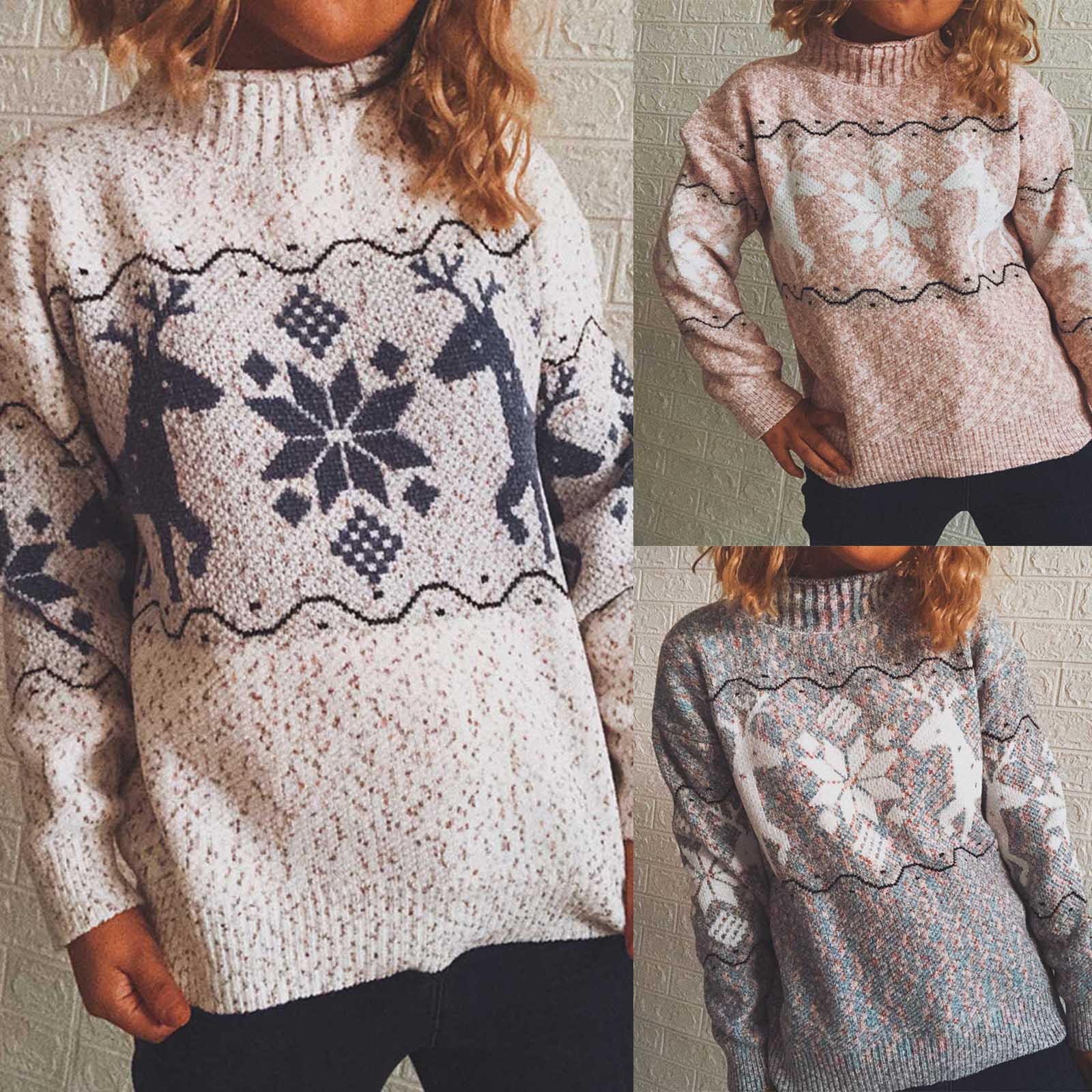 Ladies Christmas Wool Knit Round Neck Print Long-Sleeved Sweater Women