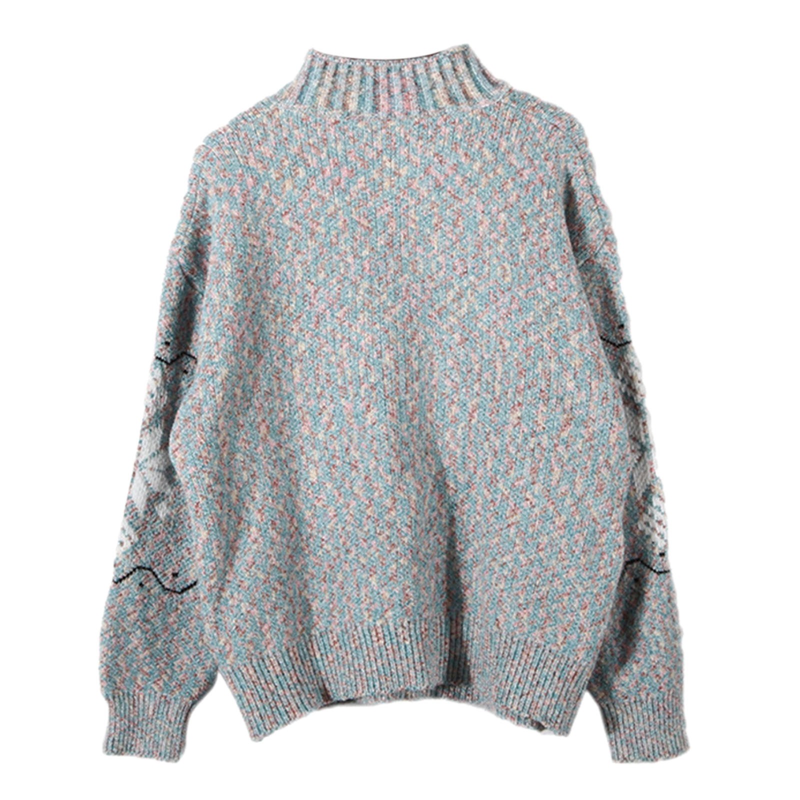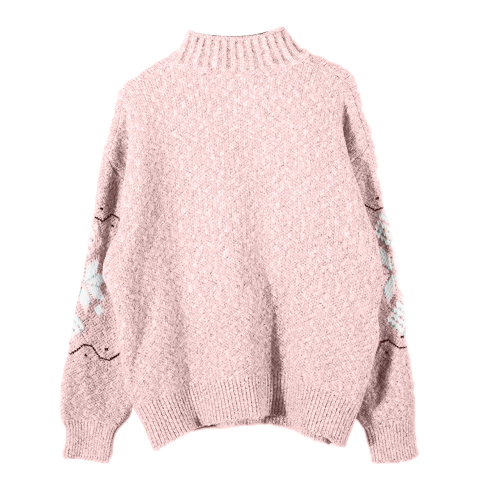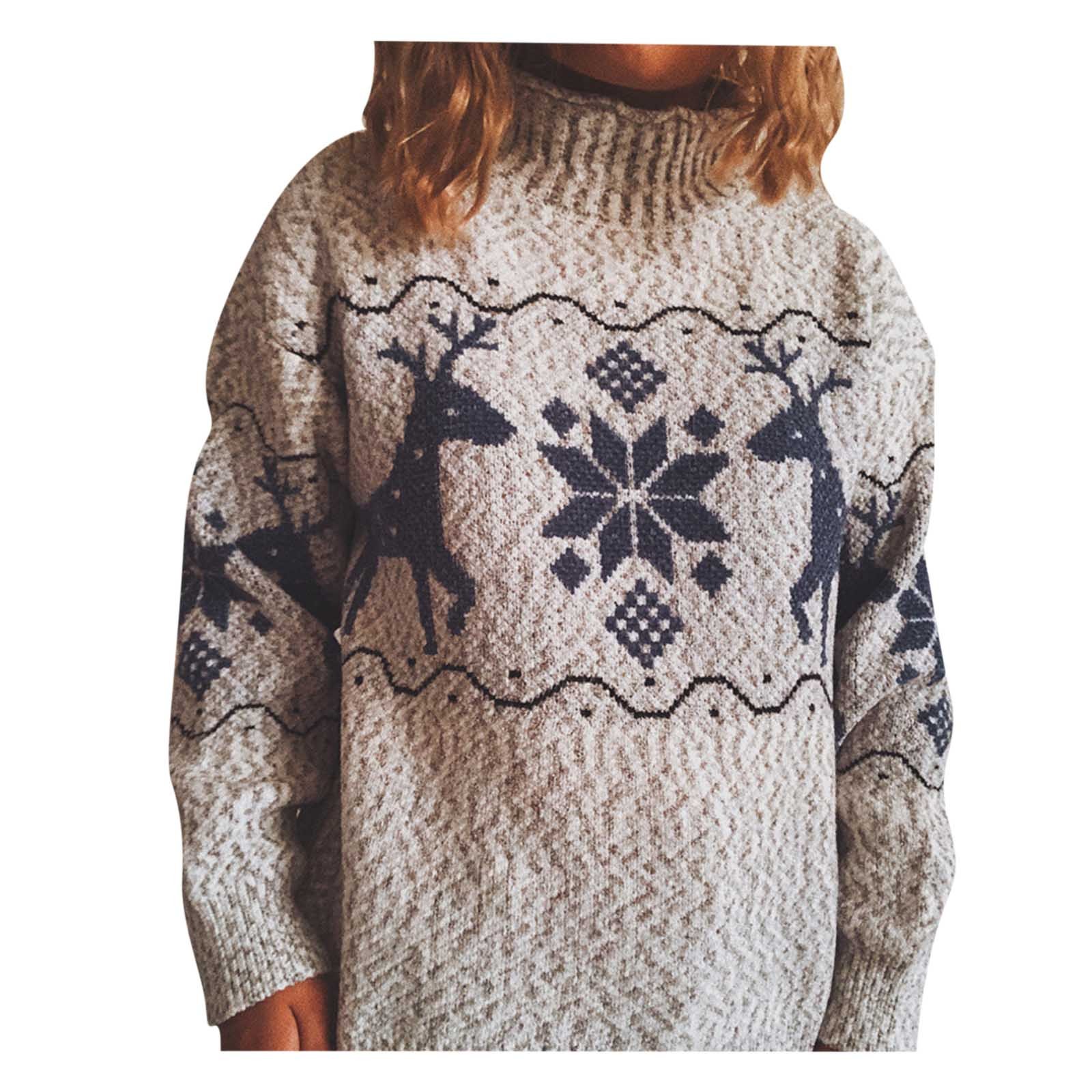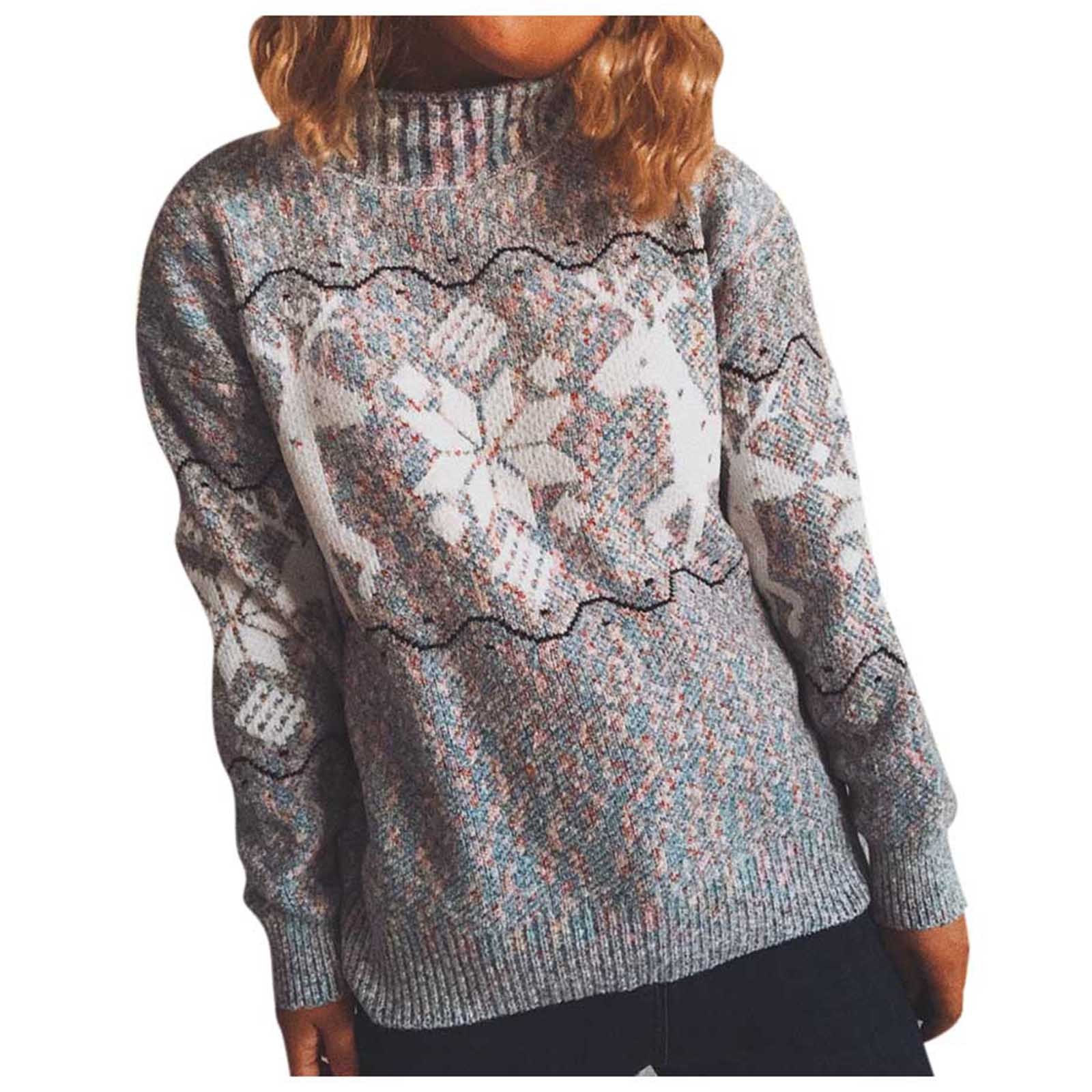 Ladies Christmas Wool Knit Round Neck Print Long-Sleeved Sweater Women
