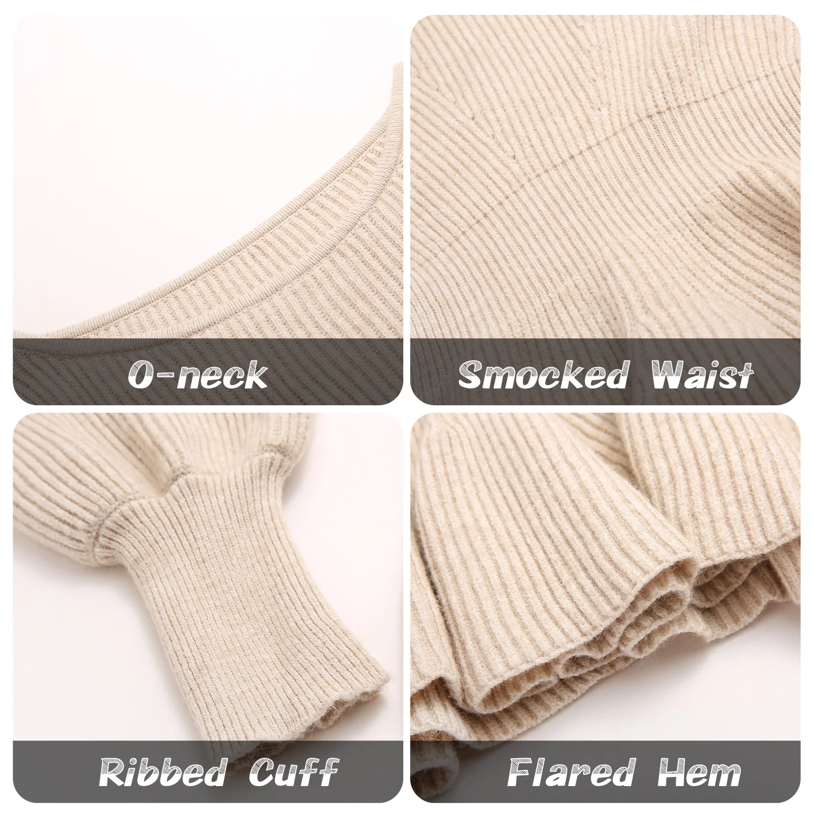 Highly recommend this sweater for winter or autumn. It features smocked waist, long lantern sleeves, flared hem and ribbed cuff. Wear it for work, date, school and party.