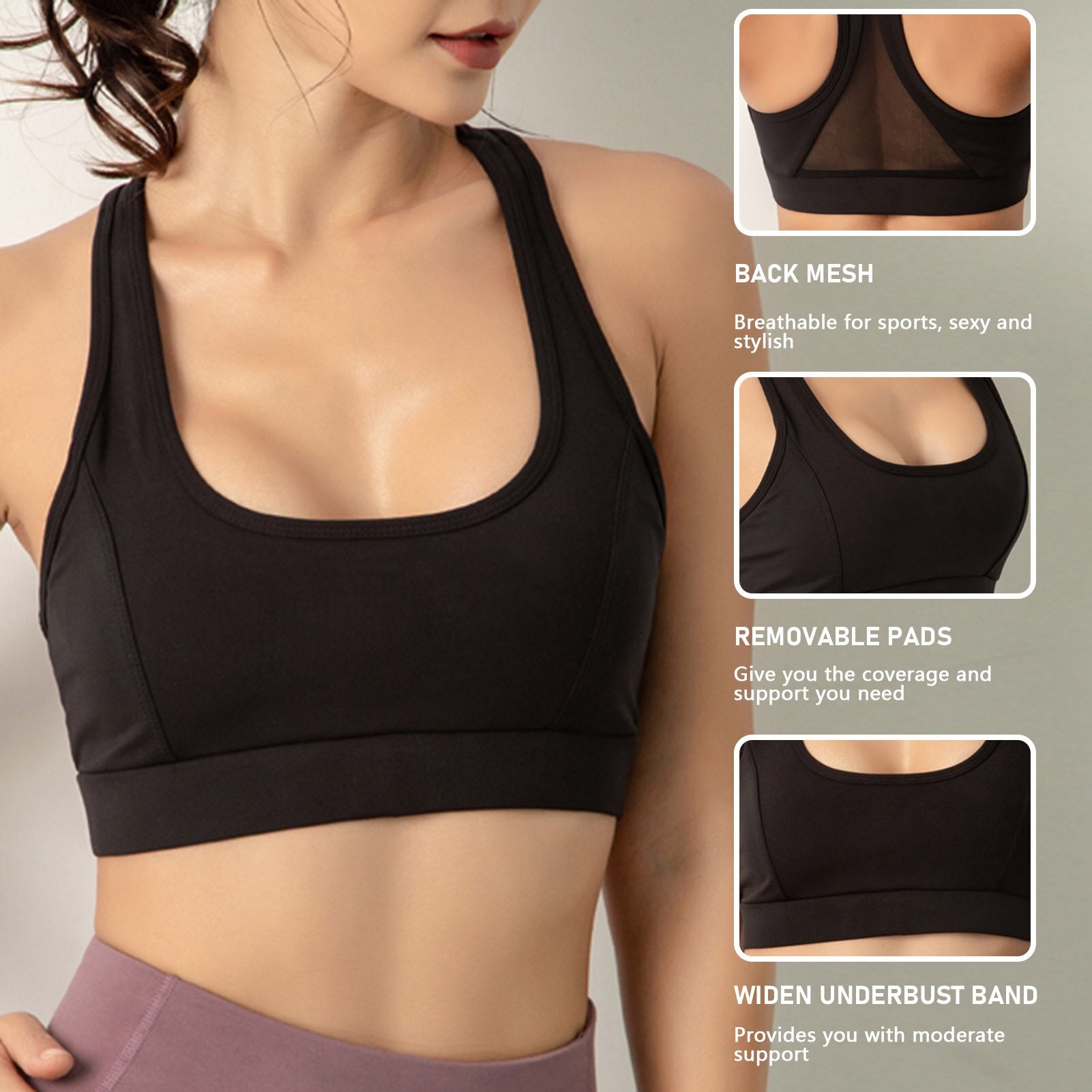 Women Sports Tops Mesh Splicing Basic Tank Tops Shockproof Padded Crop-Top Sleeveless Seamless Fitness Running Crop Camis Top