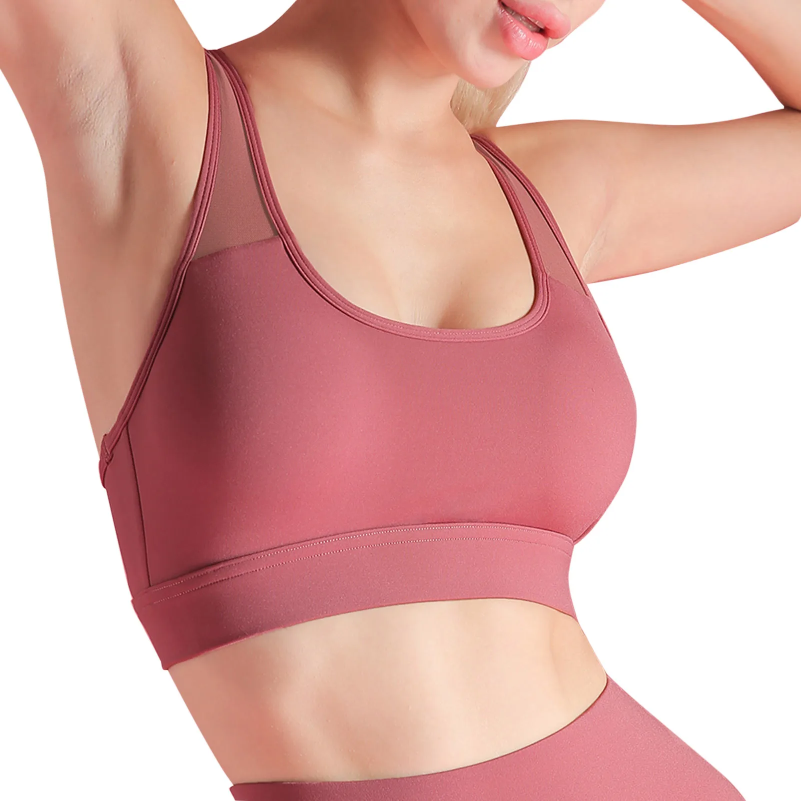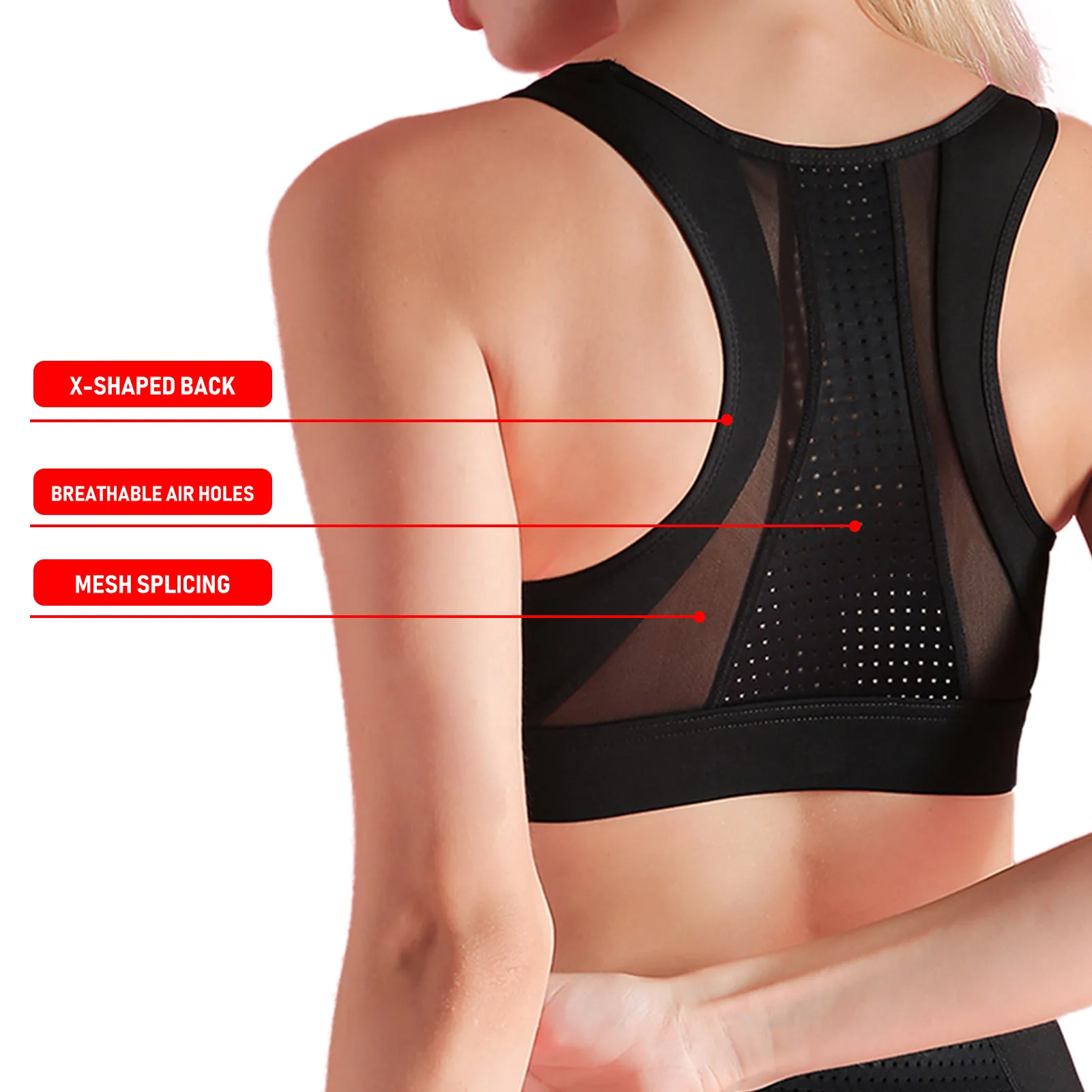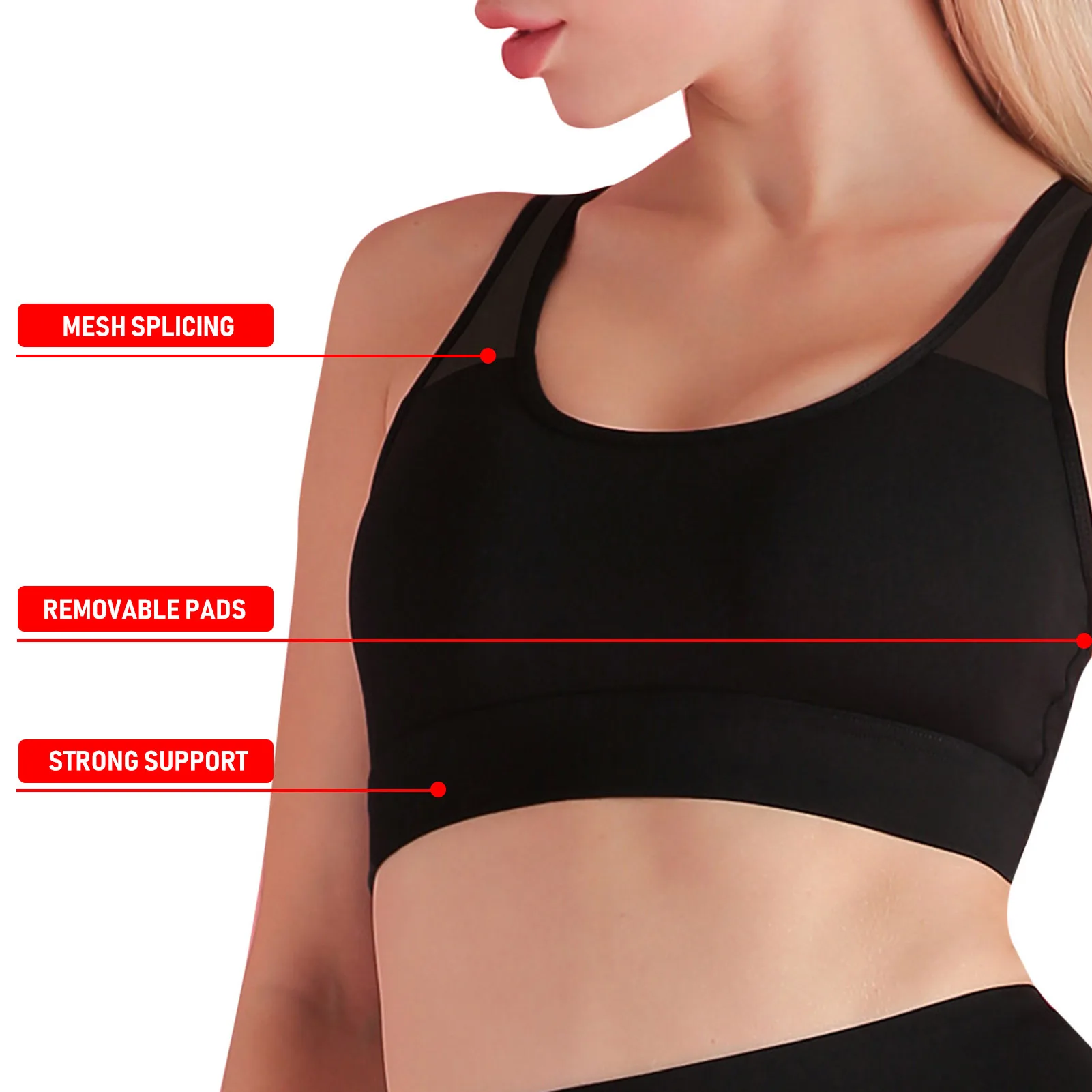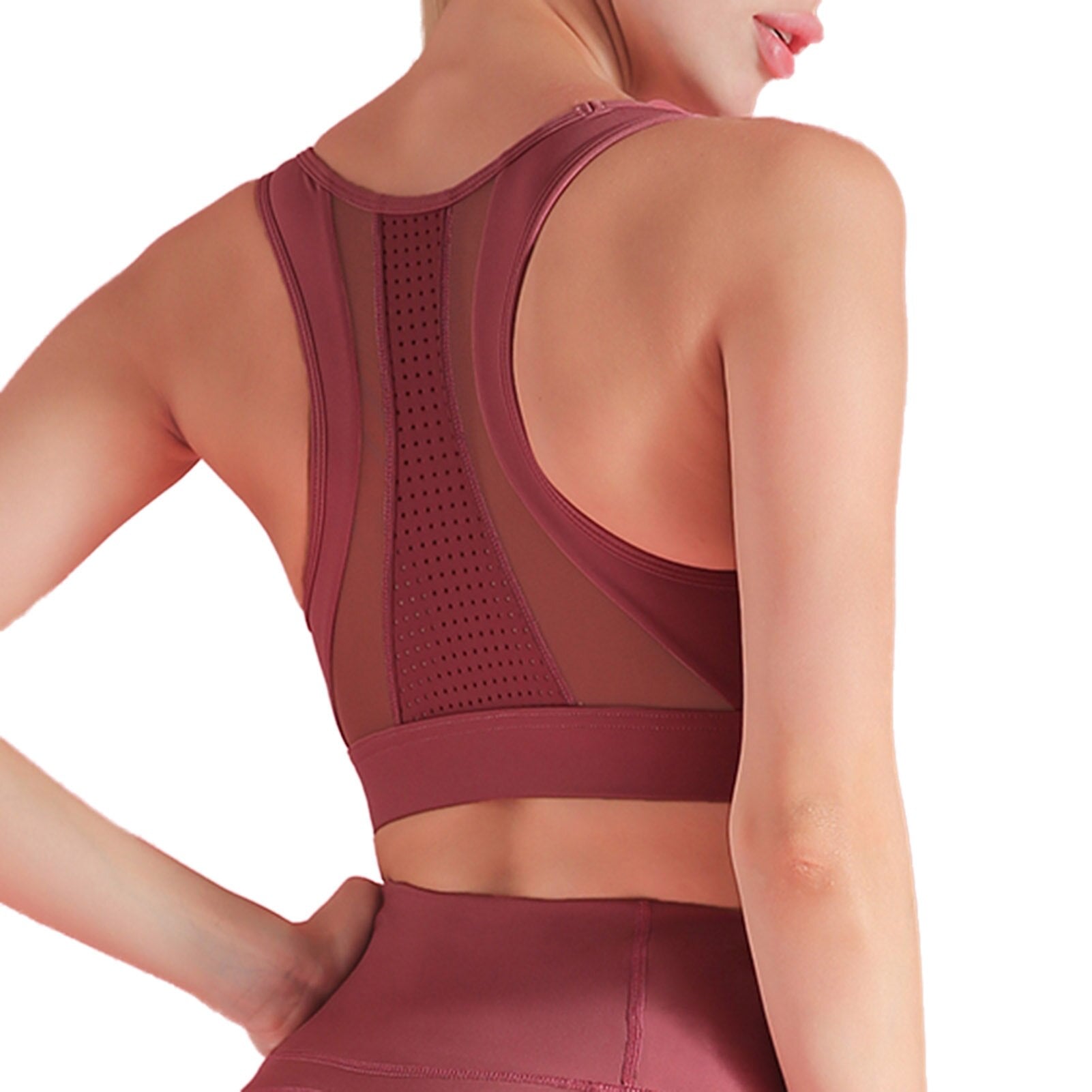 Sports bra with spliced mesh design is quite breathable. Its I-shaped back style shows your perfect body line. It is shakeproof, which perfectly supports your chest during exercising. Get one to hit the gym.