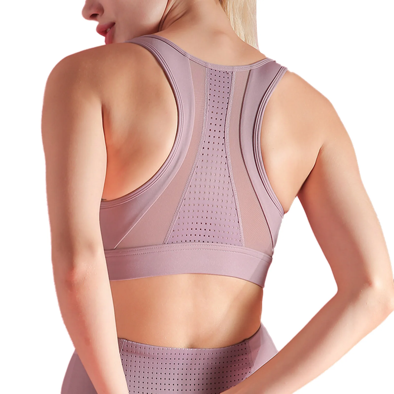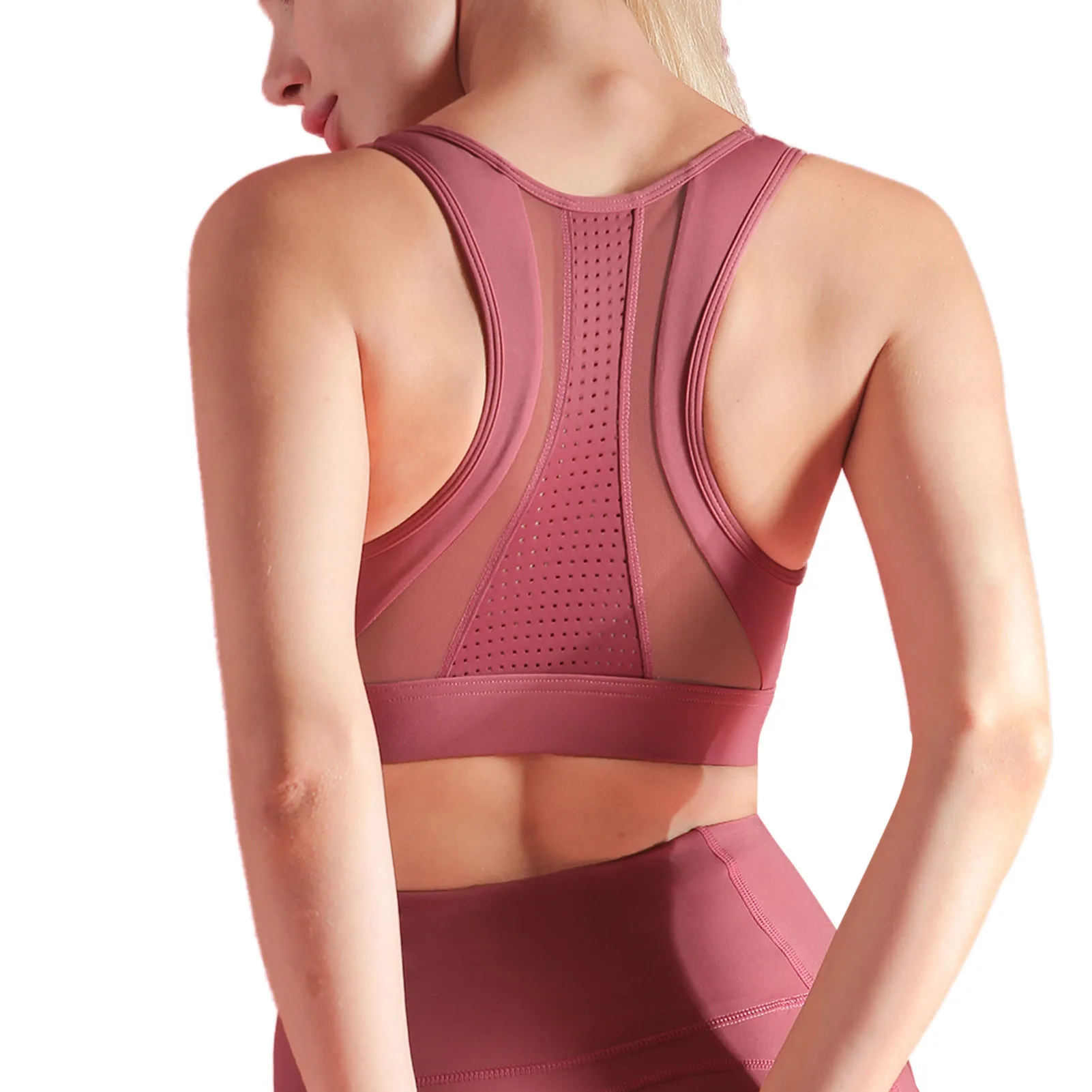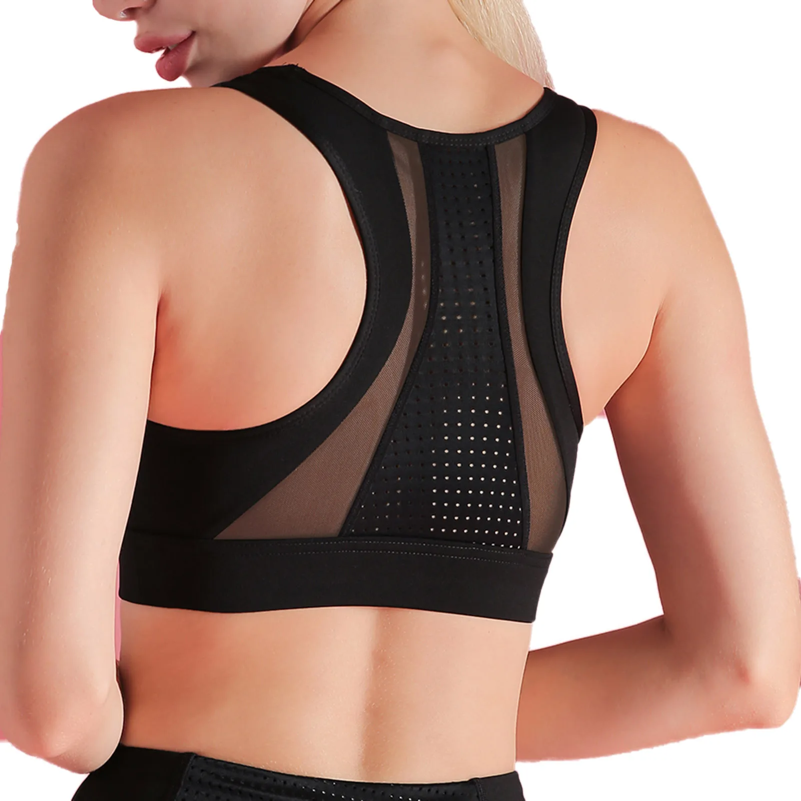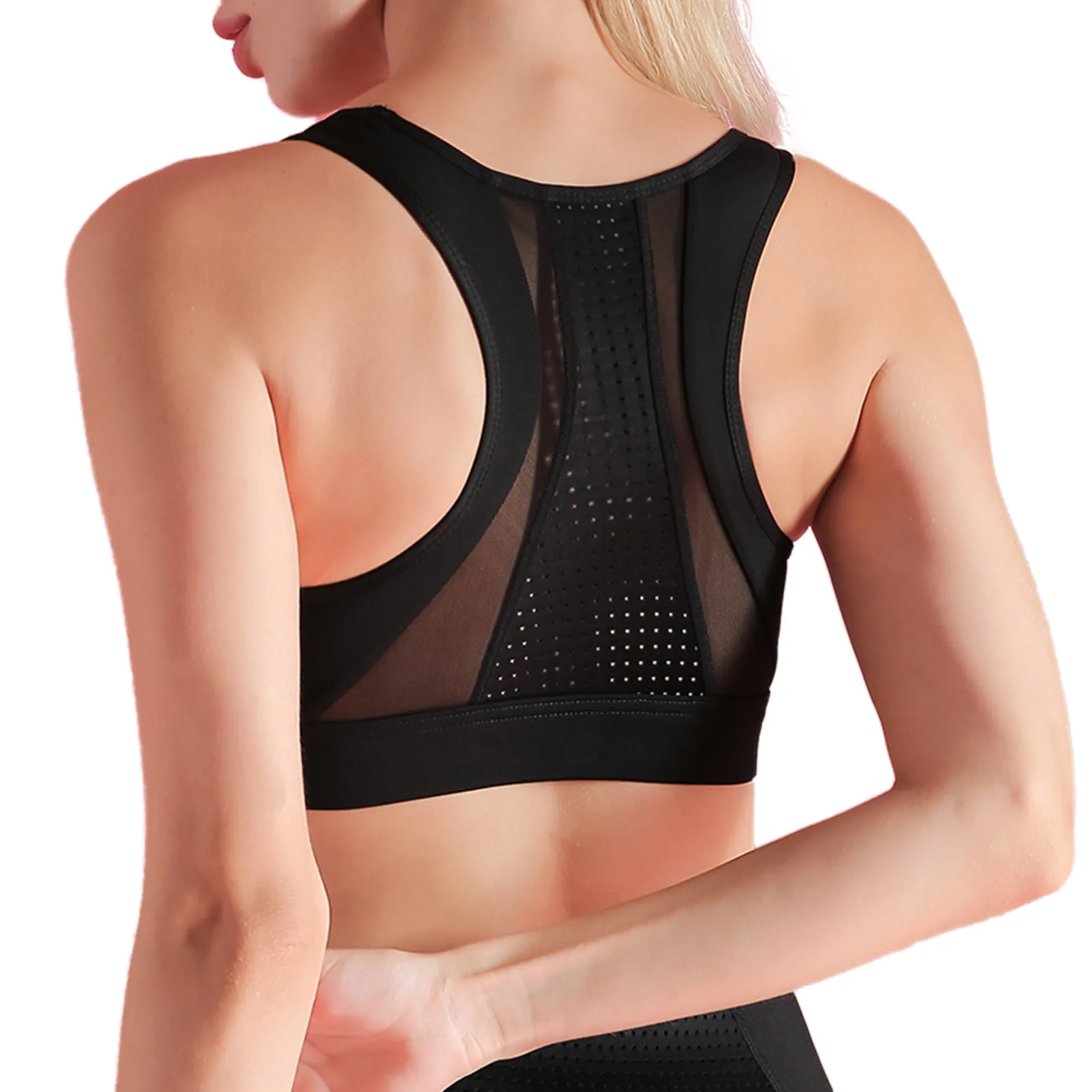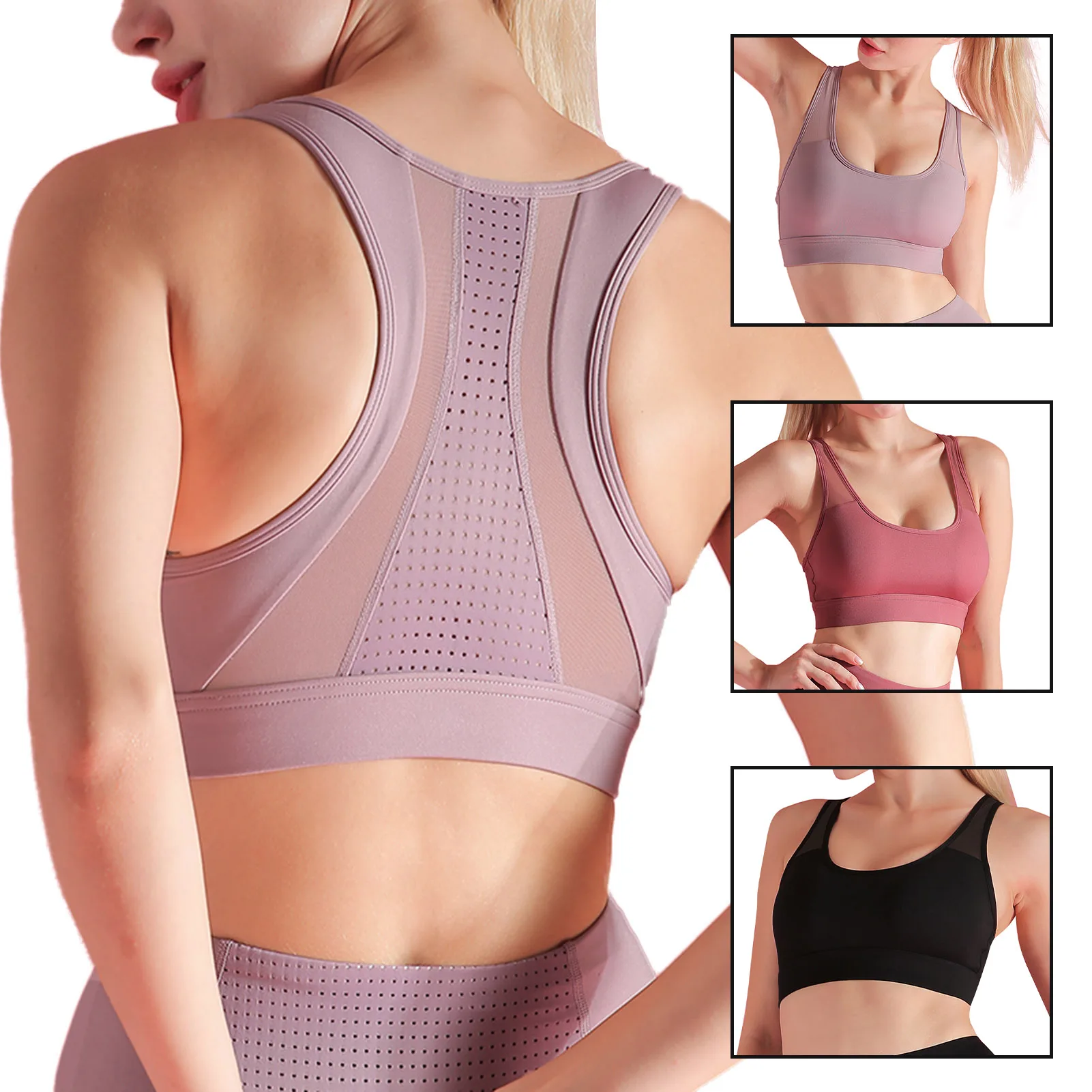 Sports bra with spliced mesh design is quite breathable. Its I-shaped back style shows your perfect body line. It is shakeproof, which perfectly supports your chest during exercising. Get one to hit the gym.