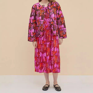 Round Neck Bowknot Printed Double-sided Lace-up Jacket