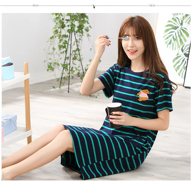 O-Neck Soft Women Sexy Nightgown Cotton Short Sleeve Cartoon Nightdress Sleepwear Summer Night Dress Female Home Clothing M-5XL