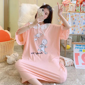 Robe Night Dress Women Sleepwear Woman Silk Short-Sleeved Sexy Robe Korean Fashion Butterfly Print Large Size Loose Home Wear