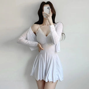 Pajamas For Women Sexy Bras Solid Elegant Mini Dress Sleepwear Kawaii Party Dress Female Korean Fashion Dress 2 Piece Set