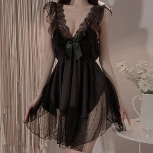 Night Dress Women Sexy Lingerie Pajamas Summer Thin Lace Suspenders Nightdress V-Neck Fashion Dress Pure Desire Wind Home Wear