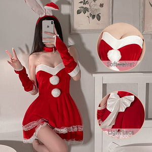 Christmas Gift Bunny Girl Cosplay Night Dress Women Sleepwear Velvet Nightgown Party Sexy Lingerie Backless Sleep Tops Camisole