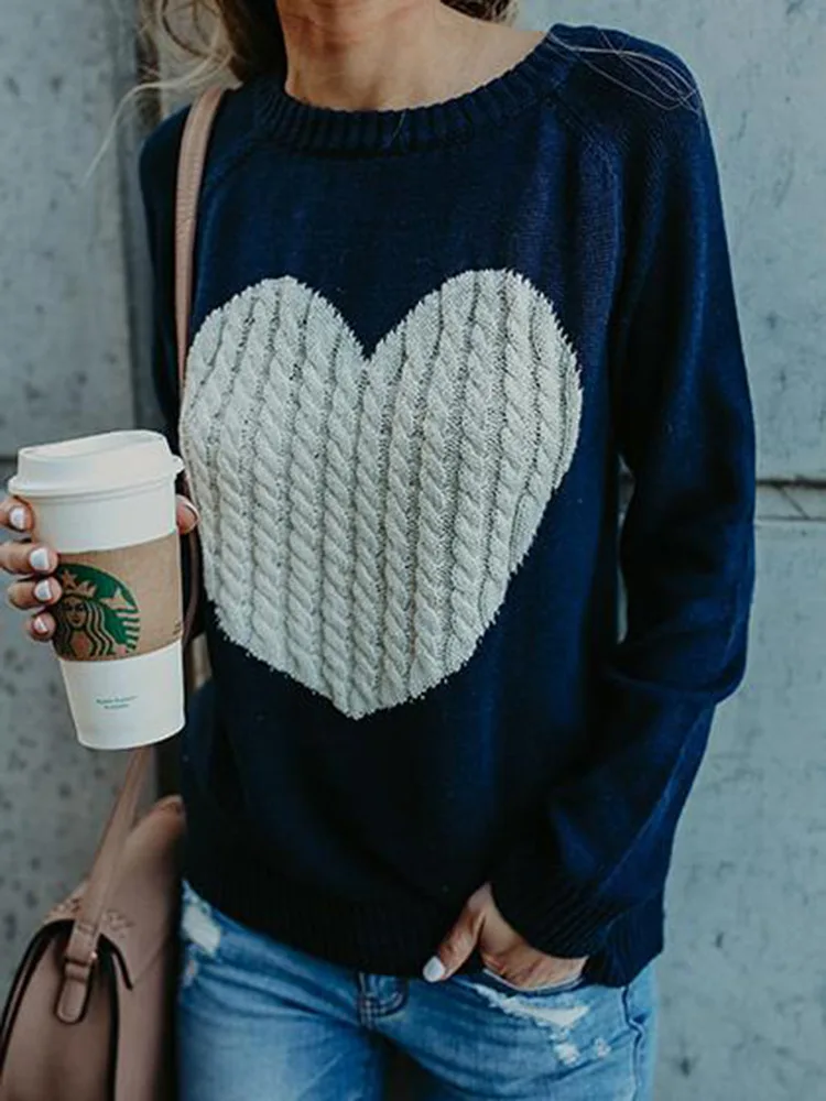 Autumn Winter New Style 2021 Women's Knitted Sweater Casual Loose Fashion Pullover Women's Plus Size Love Sweater Women