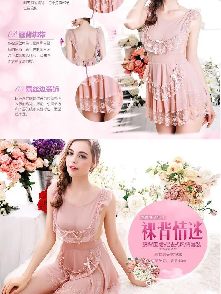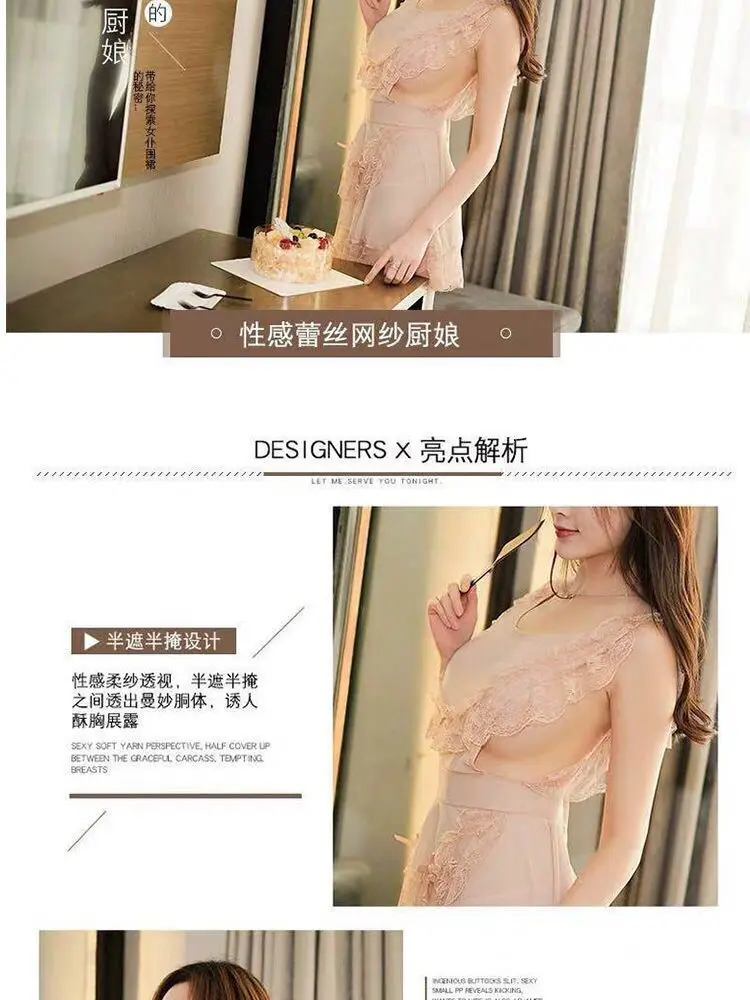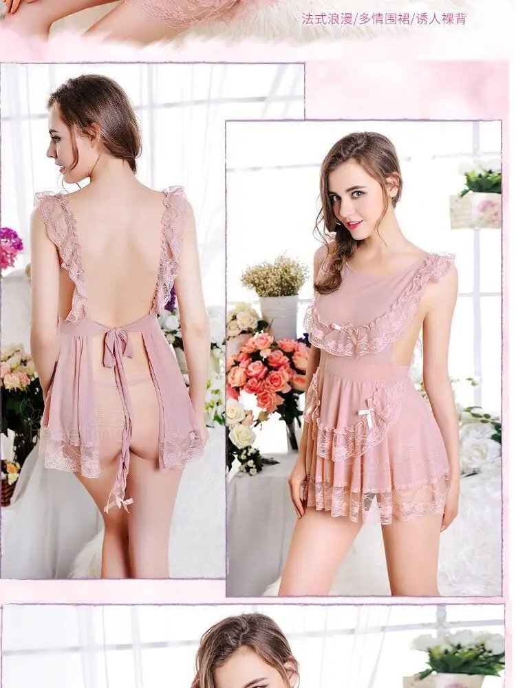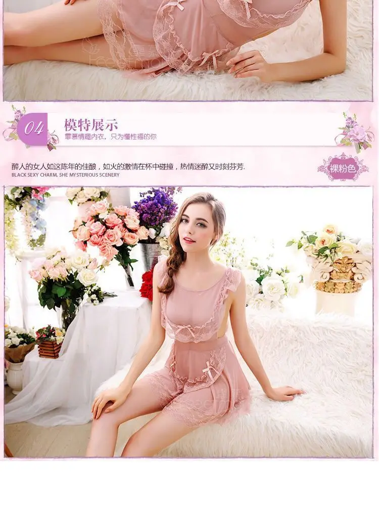 Sexy nightdress suit mesh chef lace-up ladies underwear plus size pajamas lace temptation home clothes Sao