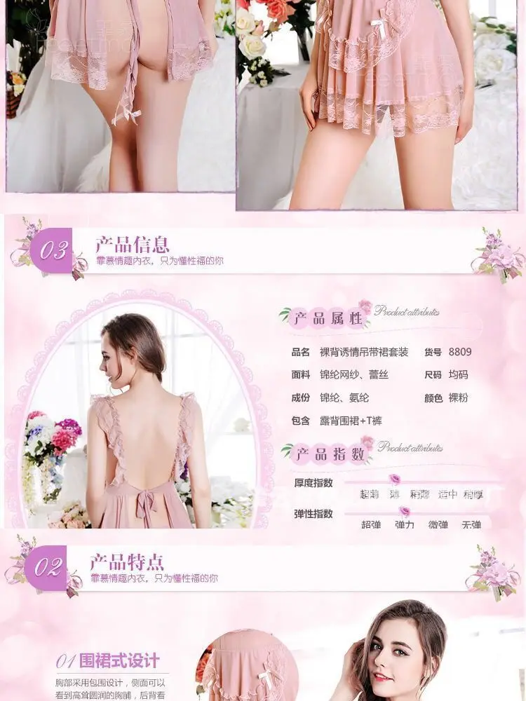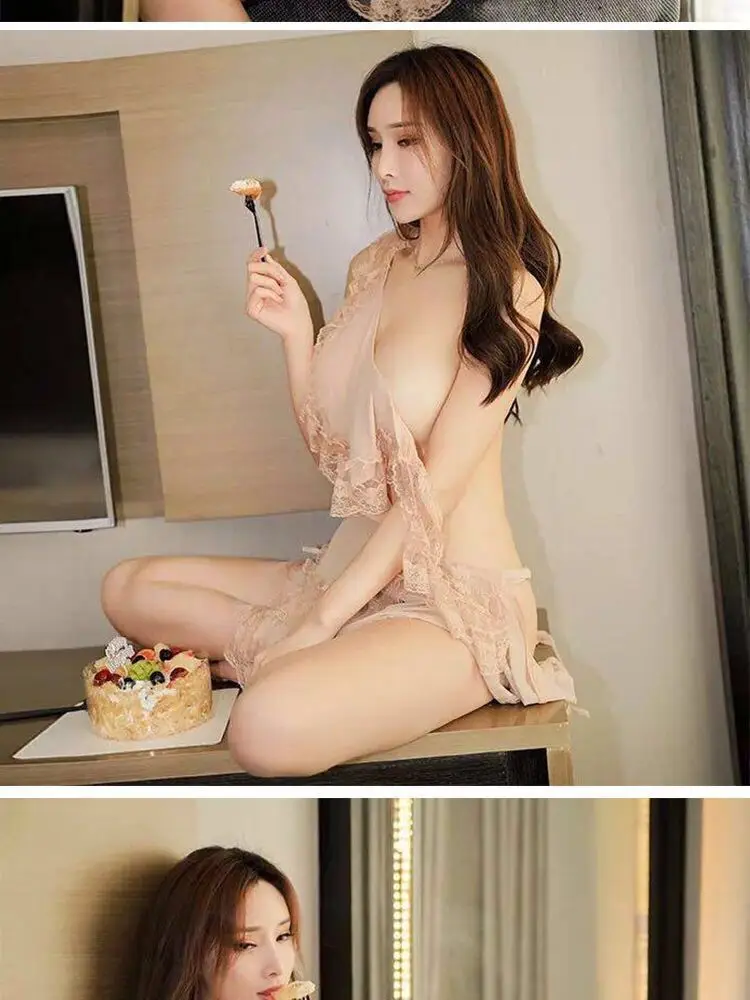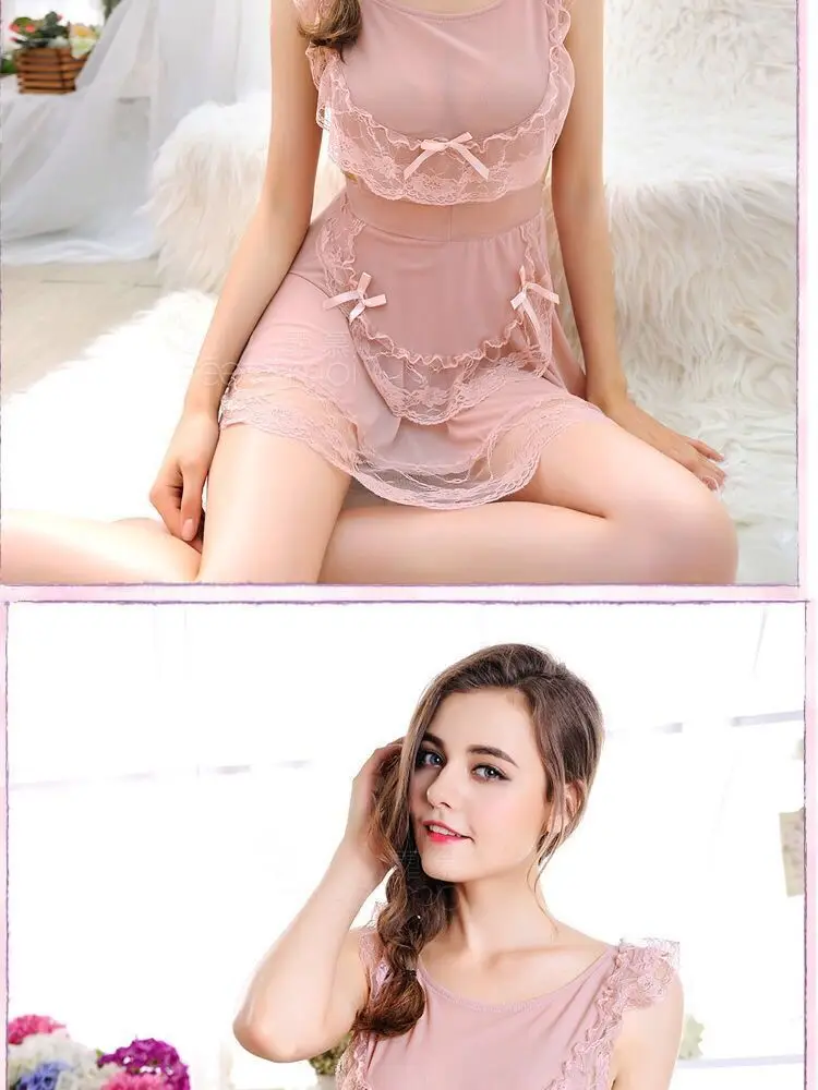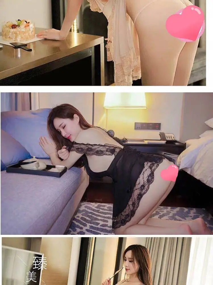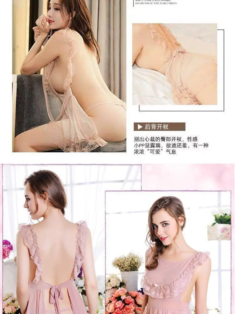 Sexy nightdress suit mesh chef lace-up ladies underwear plus size pajamas lace temptation home clothes Sao