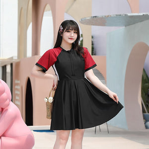 • Women's Swimwear Korea Swimsuit Skirt 5XL Woman One Piece Plus Size Tankini Monokini Lace Sleeve Black Swim Suit Beach Wear