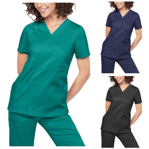 • Women Nurse Uniform Short Sleeve V-neck Tops Summer Plus Size Ladies T-shirt Care Workers Tunic Clinic 2023 New Blouse Clothing