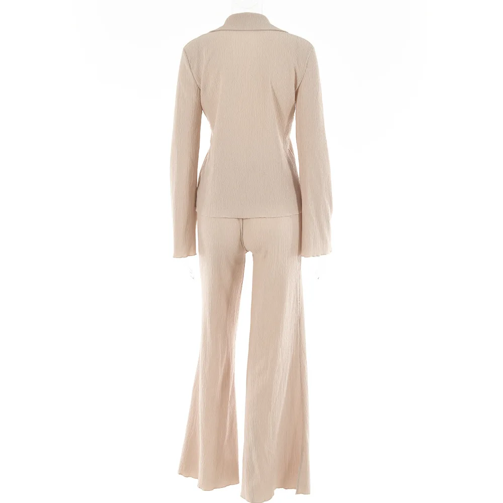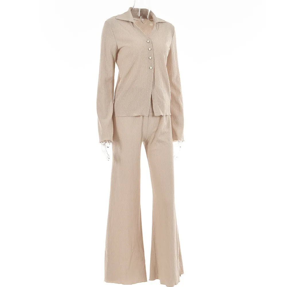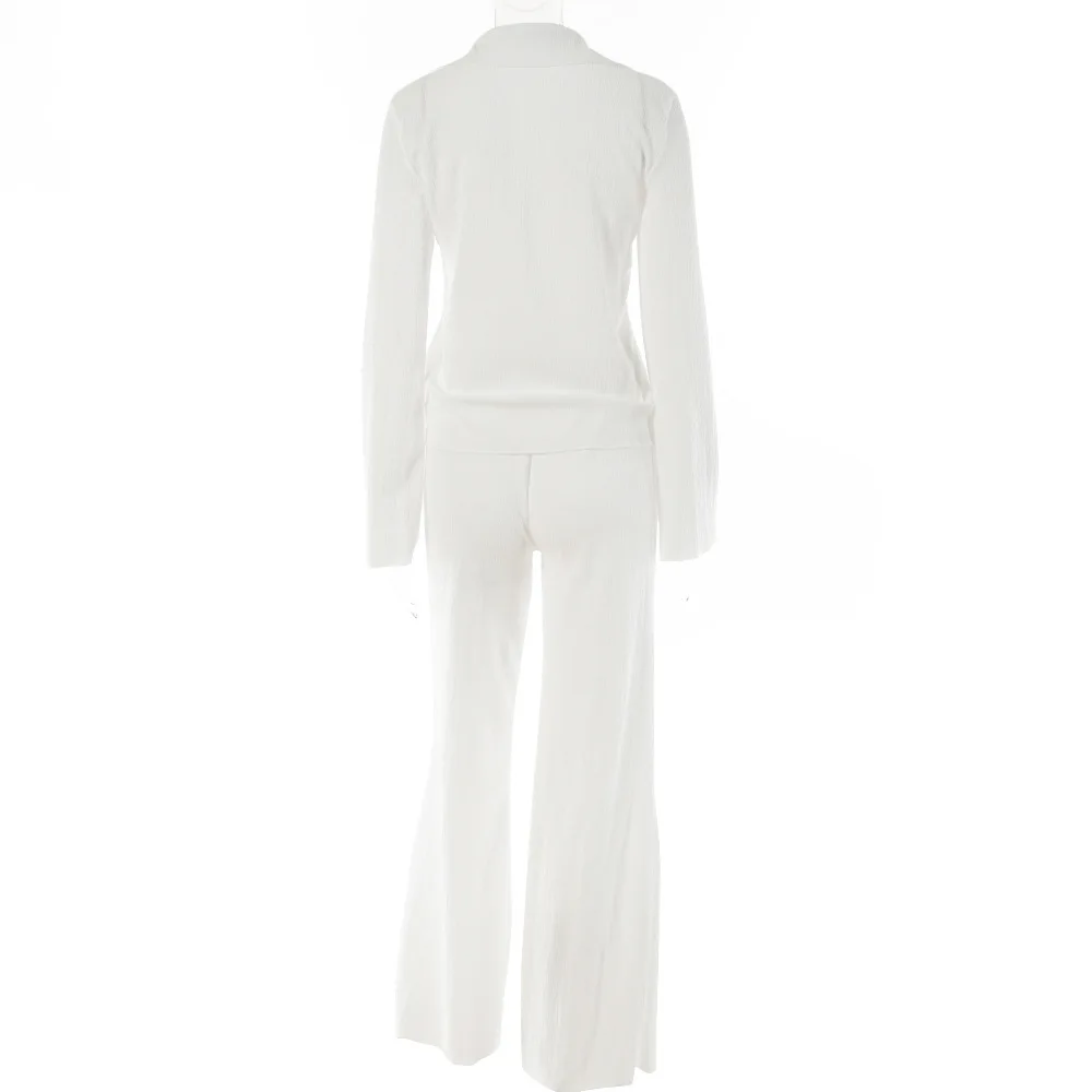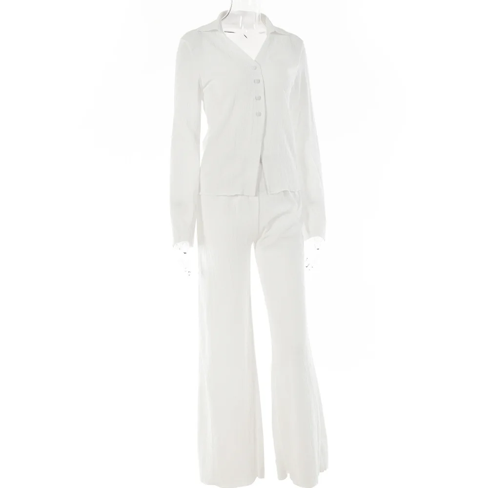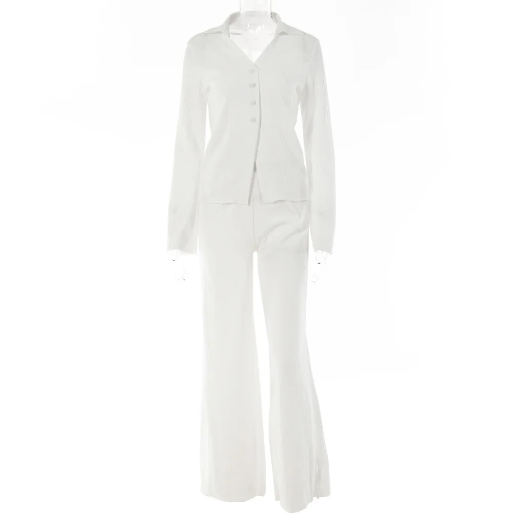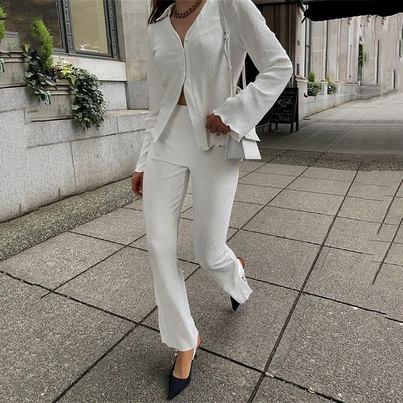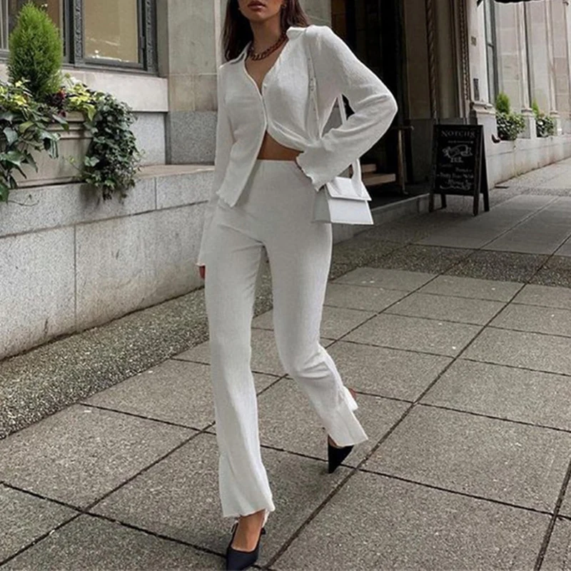 2021 New Fashion Street Photography Net Red Lace Cardigan Top Loose Trousers Sexy Two Piece Set Elegant Clothes Pant Suits