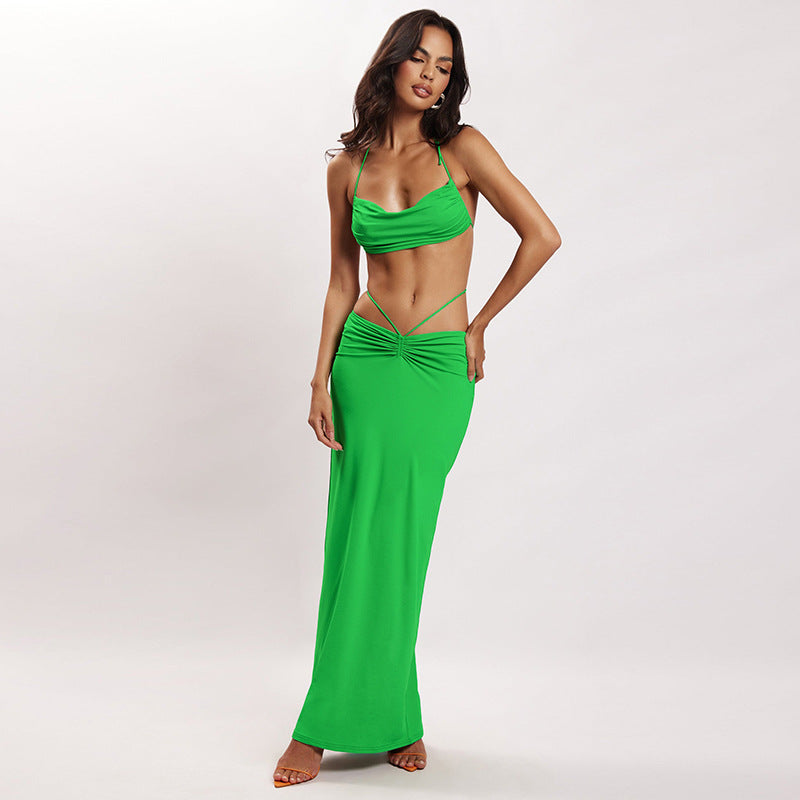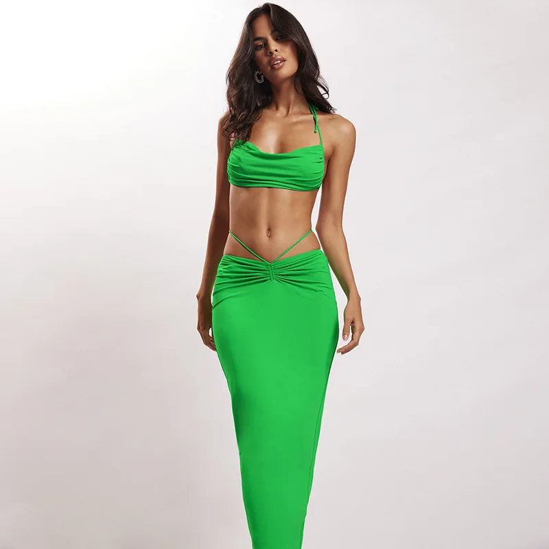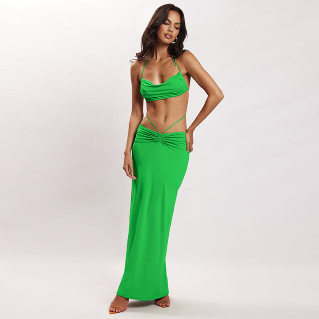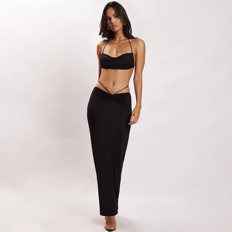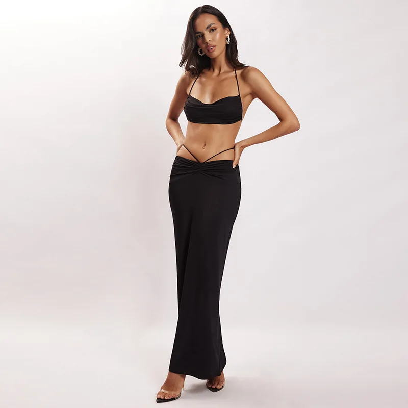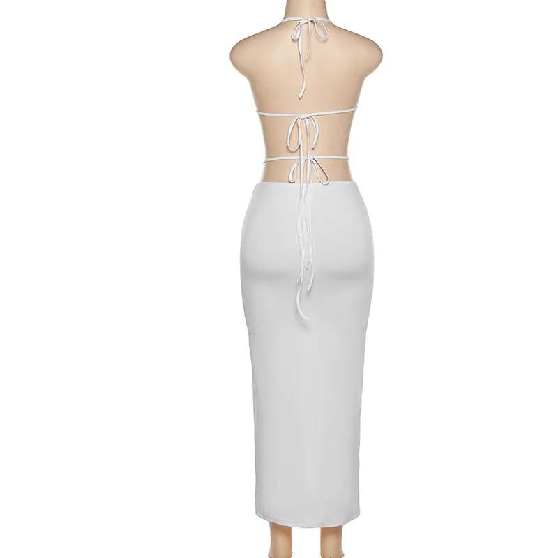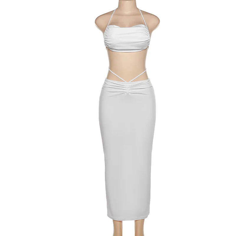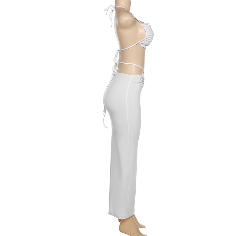 2022 Summer Elegant White Halter Bandage Sexy 2 Piece Maxi Dress Sets Women Fashion Outfits Club Party Skirt Matching Suit Cloth