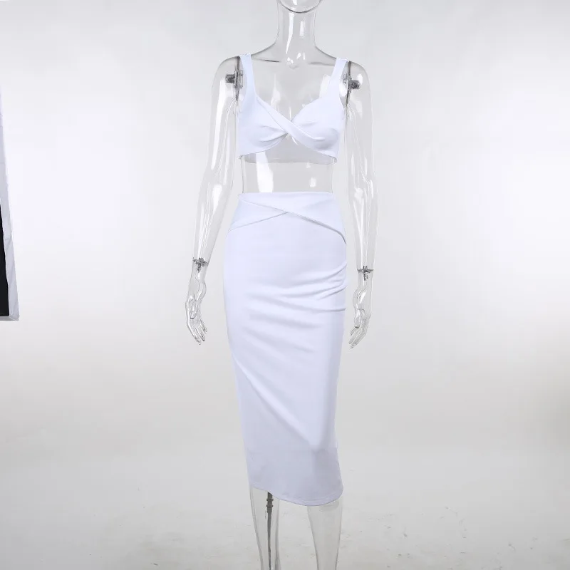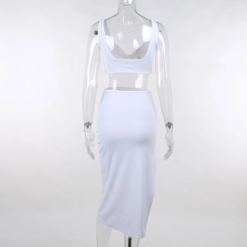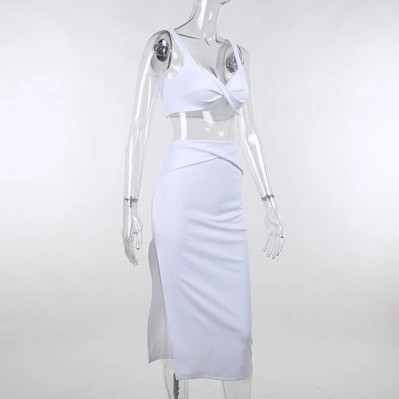 2022 Summer Elegant White Sexy Slit 2 Piece Skirt Sets Women Fashion Outfits Club Party Co-ord Sets Top Matching Sets Clothes