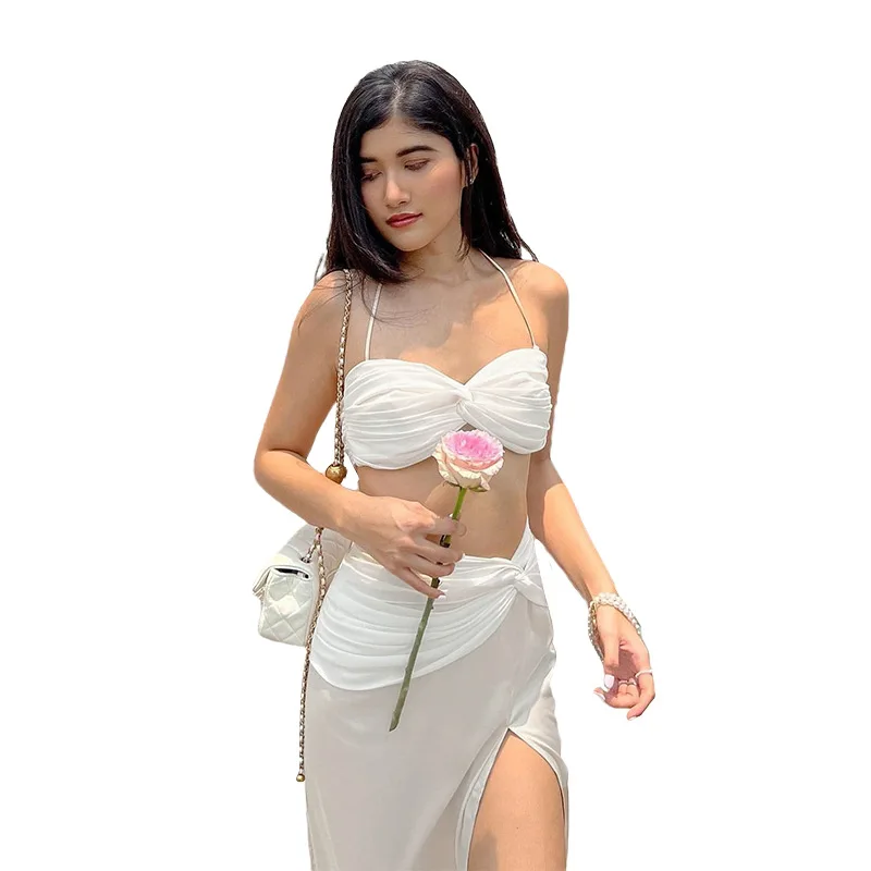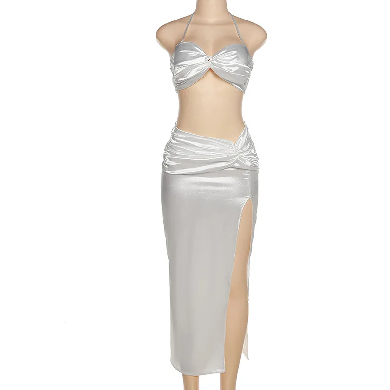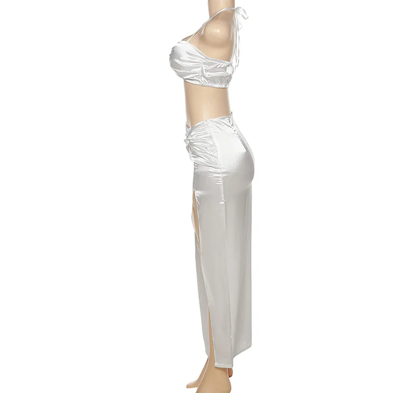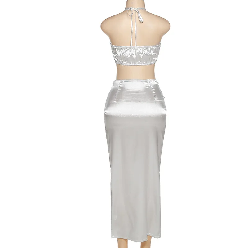 2022 Summer Fashion Satin Camis Tube Top and Maxi Skirt 2 Piece Set for Women Matching Sets Outfits Sexy Backless Elegant Vacat