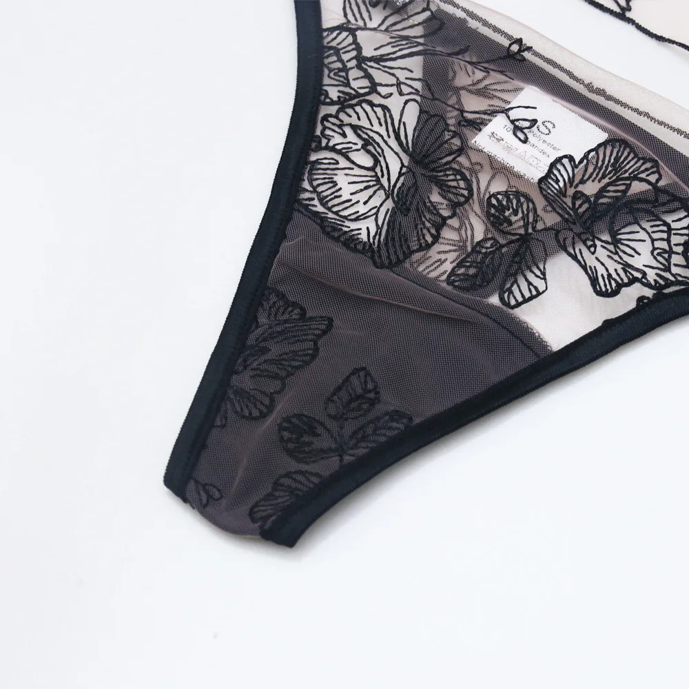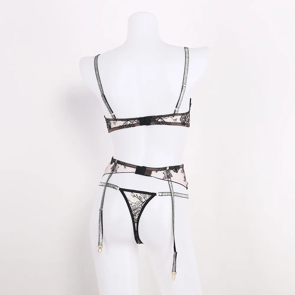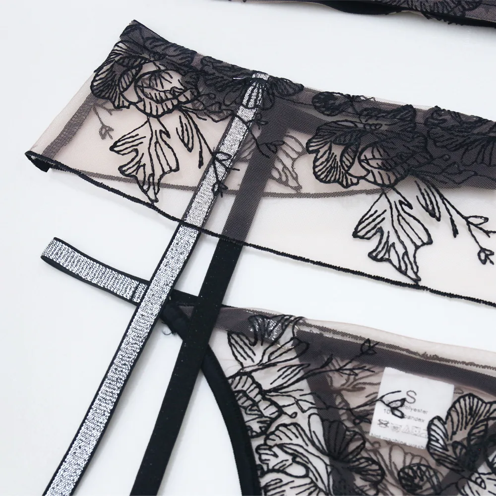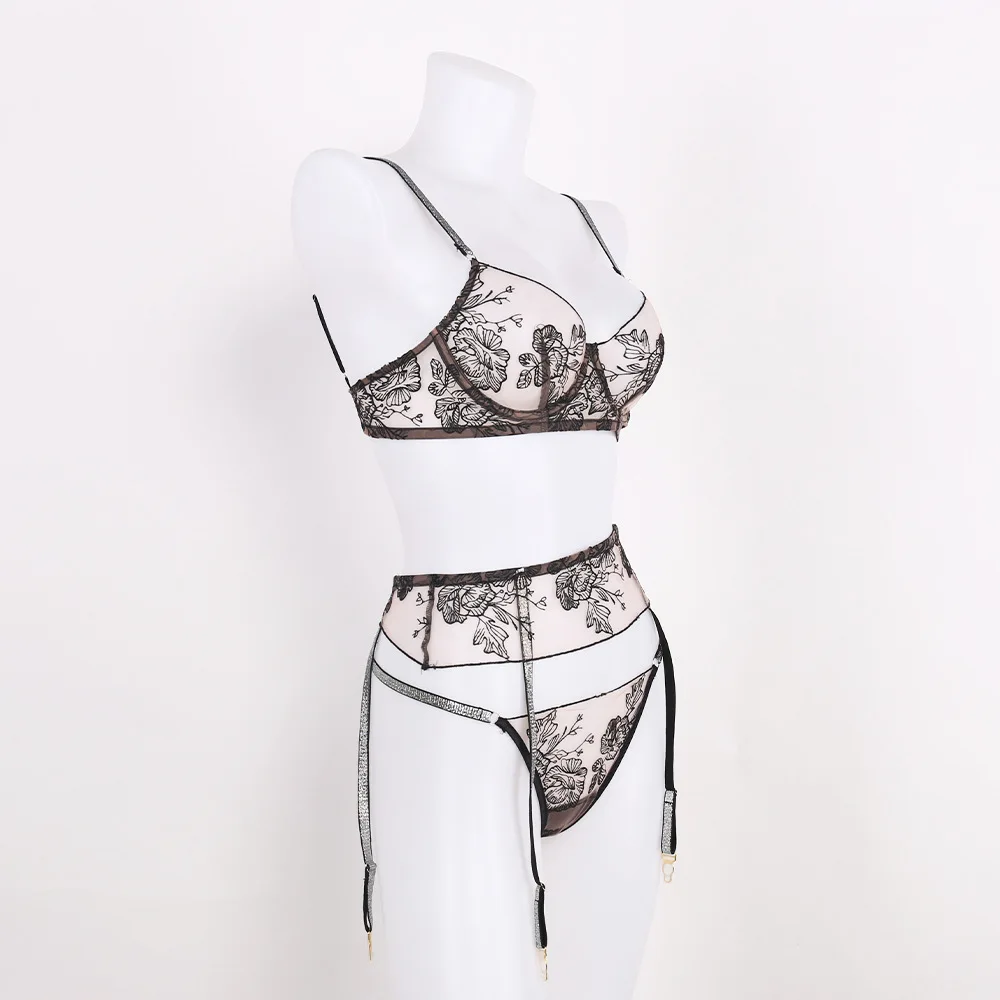 3 Pieces Set Erotic Lingerie Set Woman Sensual Embroidery See-Through Brief Sets Fancy Garters Langerie Push Up Bra Outfit Set