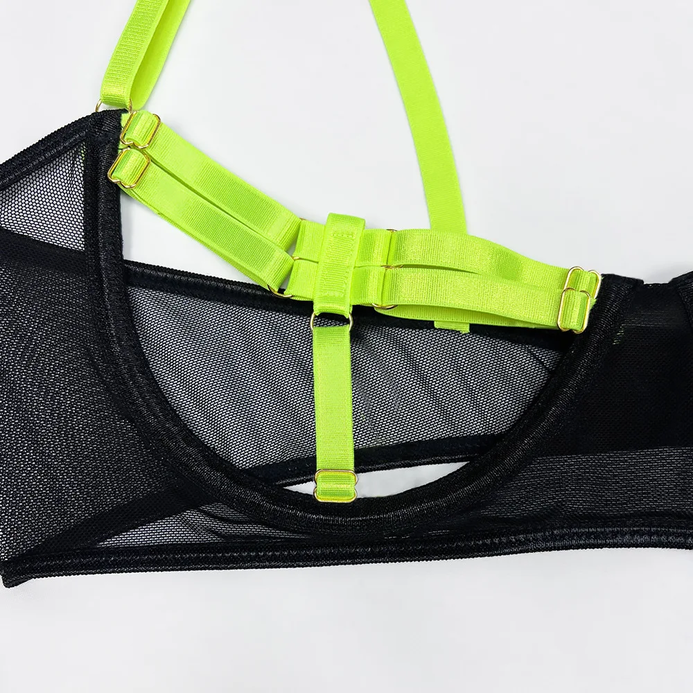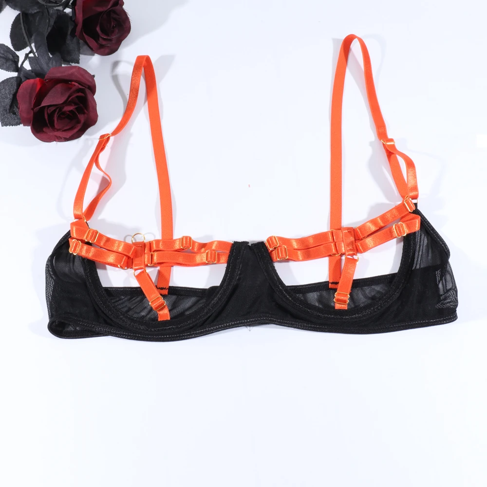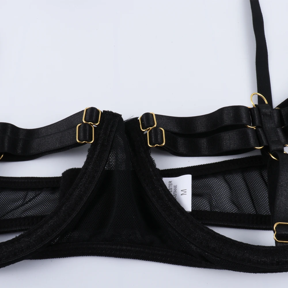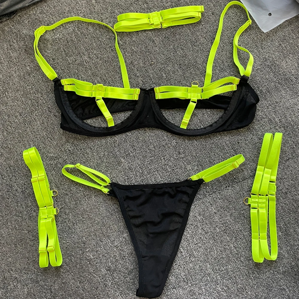 4 Pieces Patchwork Bra and Brief Sets Sexy Lingerie Bondage Underwear See-Through Erotic Garters Belts Lingerie Exotic Outfits