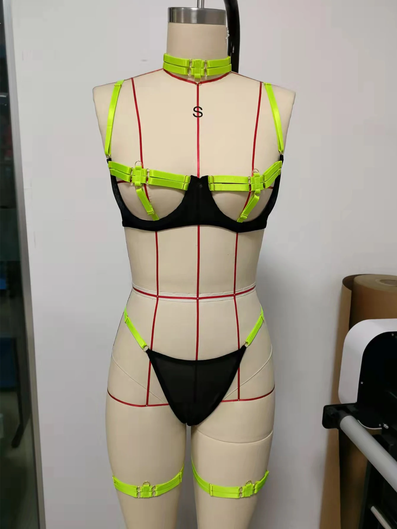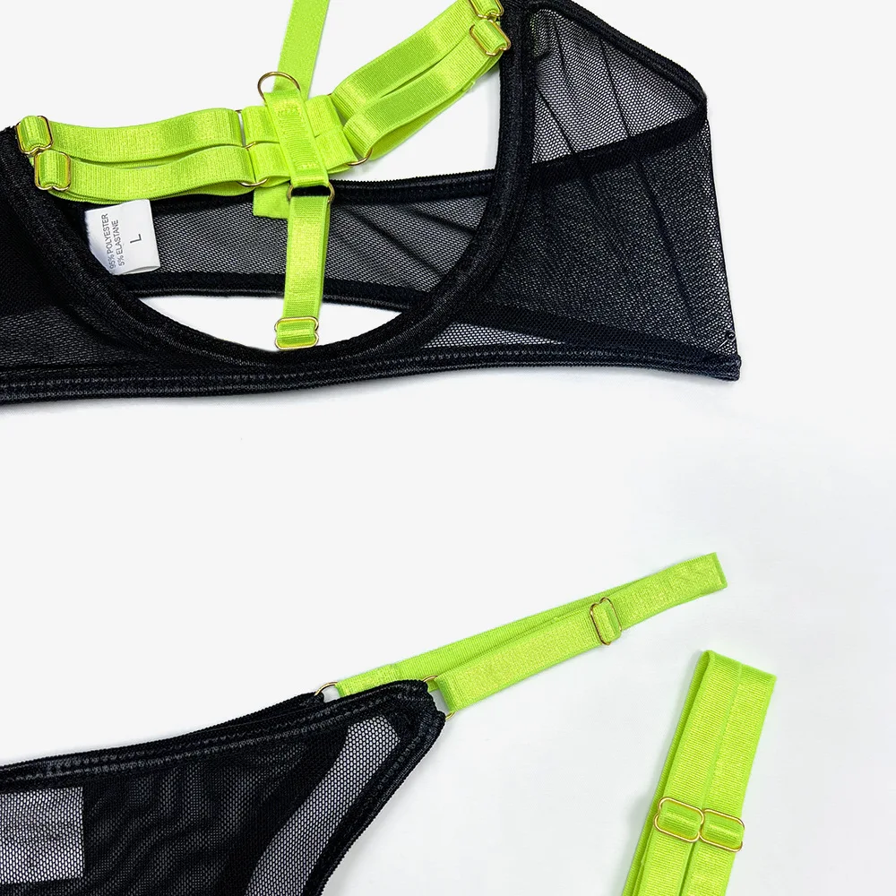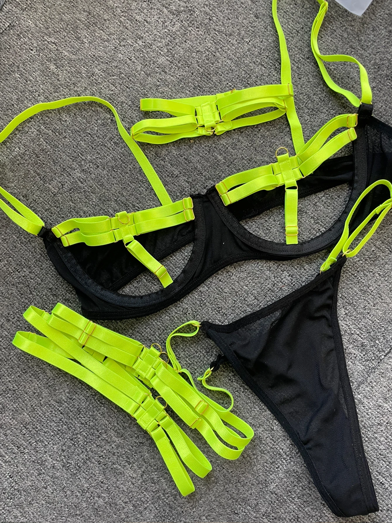 4 Pieces Patchwork Bra and Brief Sets Sexy Lingerie Bondage Underwear See-Through Erotic Garters Belts Lingerie Exotic Outfits