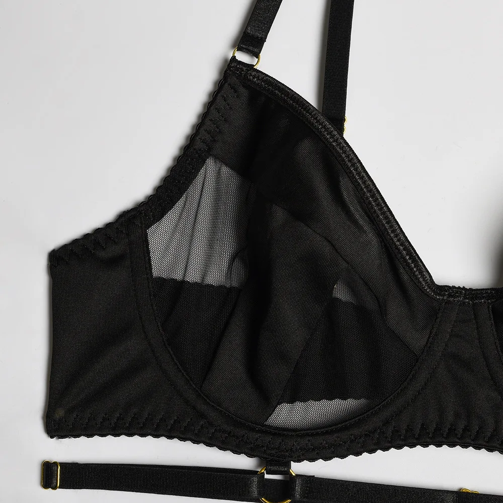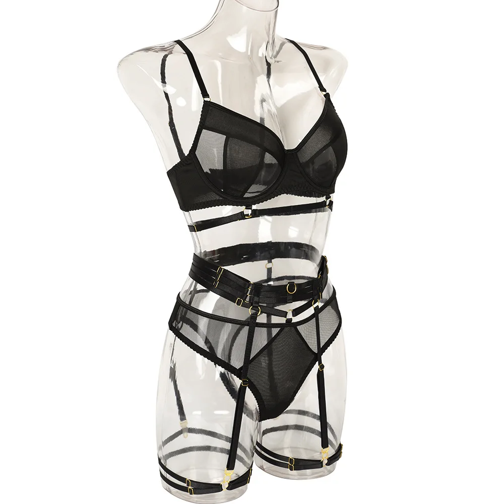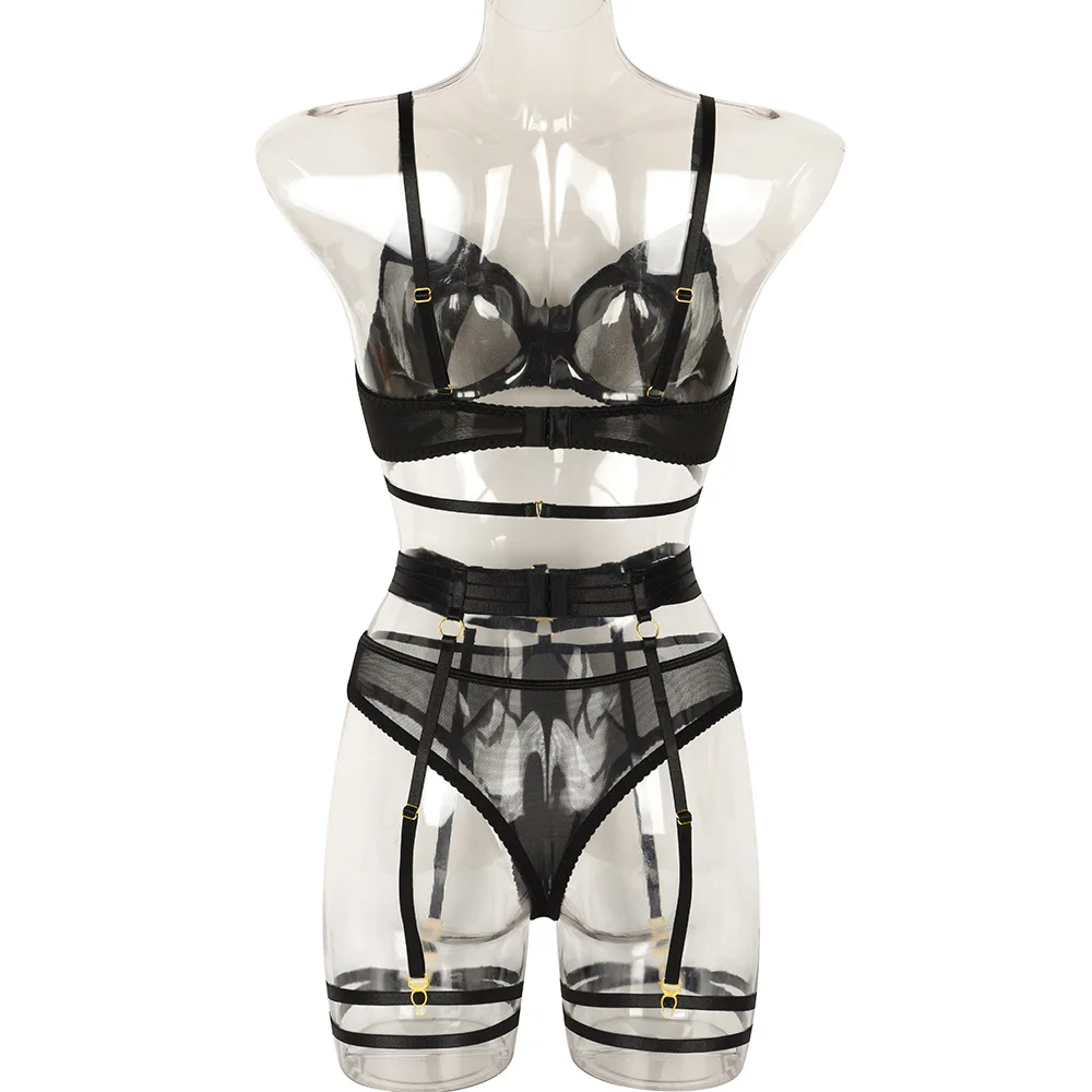 4 Pieces Patchwork Bra and Brief Sets Sexy Lingerie Mesh Underwear See-Through Erotic Garters Sensual Lingerie Exotic Outfits
