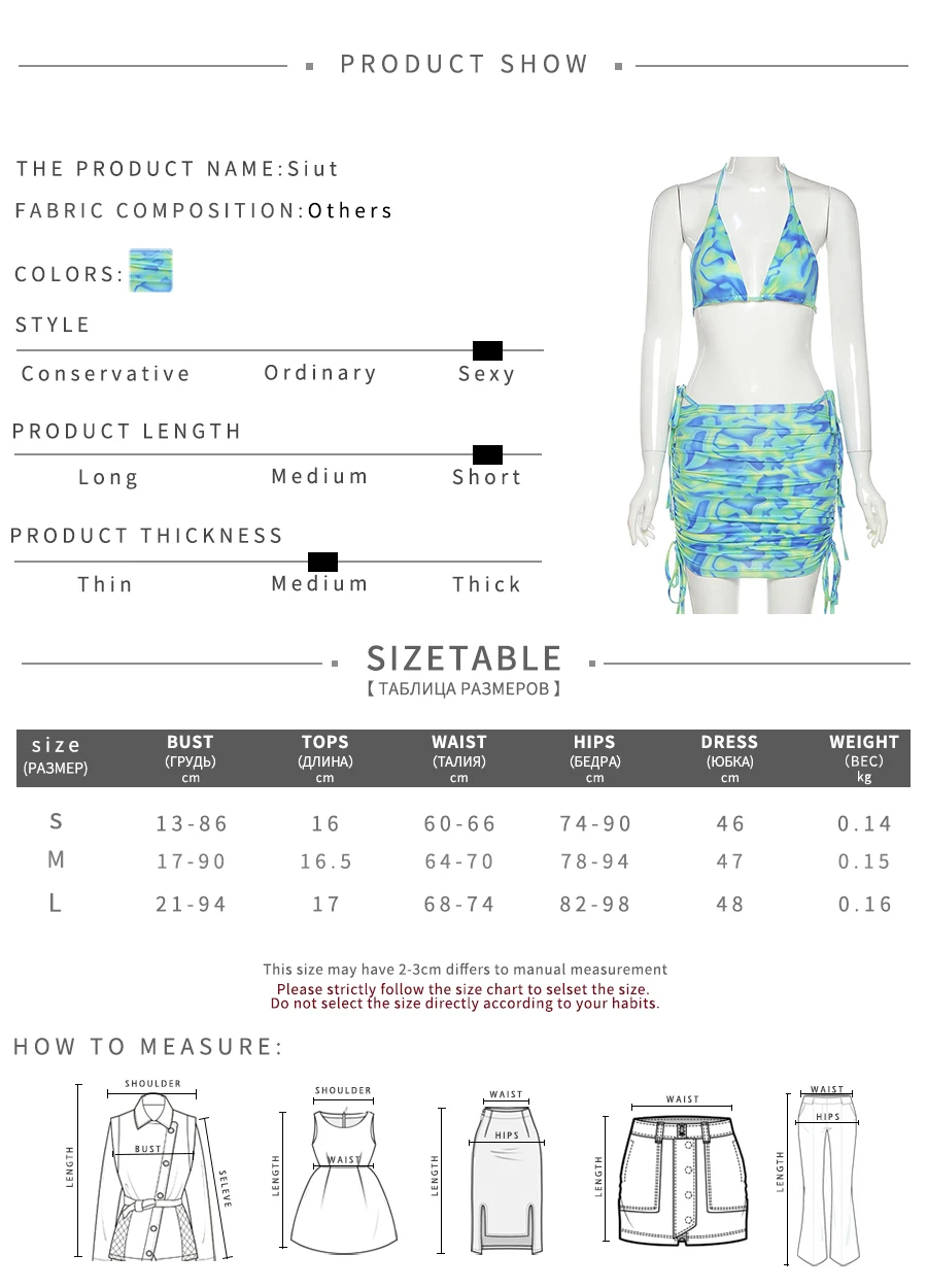 Bandage Halter Print Two Piece Sets Women Backless Sexy Hot Tops Drawstring Stacked Skirts Summer Vacation Outfits Beach Style