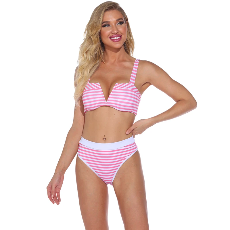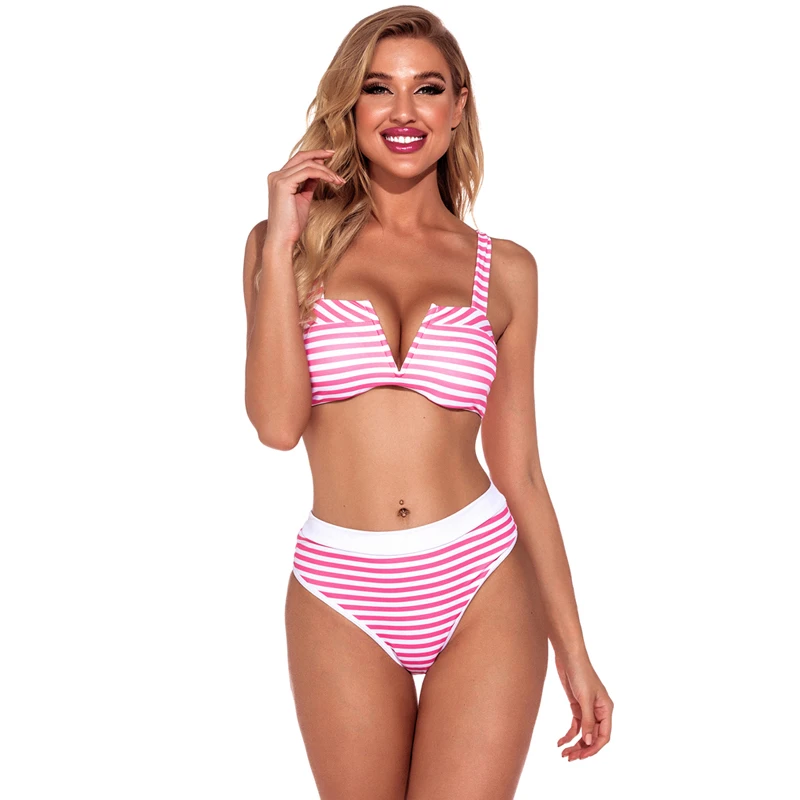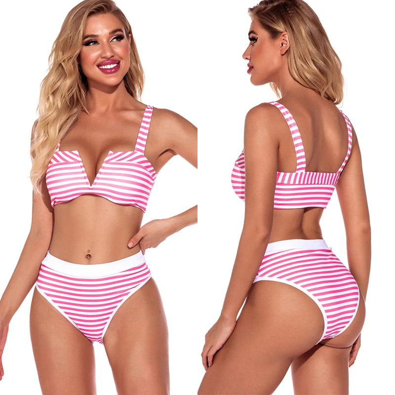 Bikini 2021 Women's Swimsuits Swimsuit Separate Bathing Suit Pink Sling Stripe Summer Casual