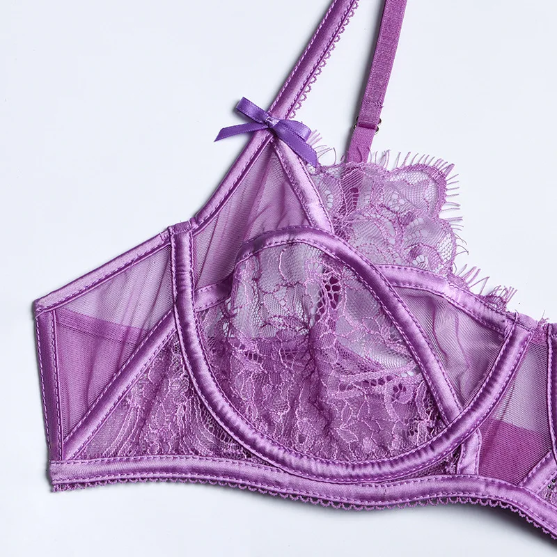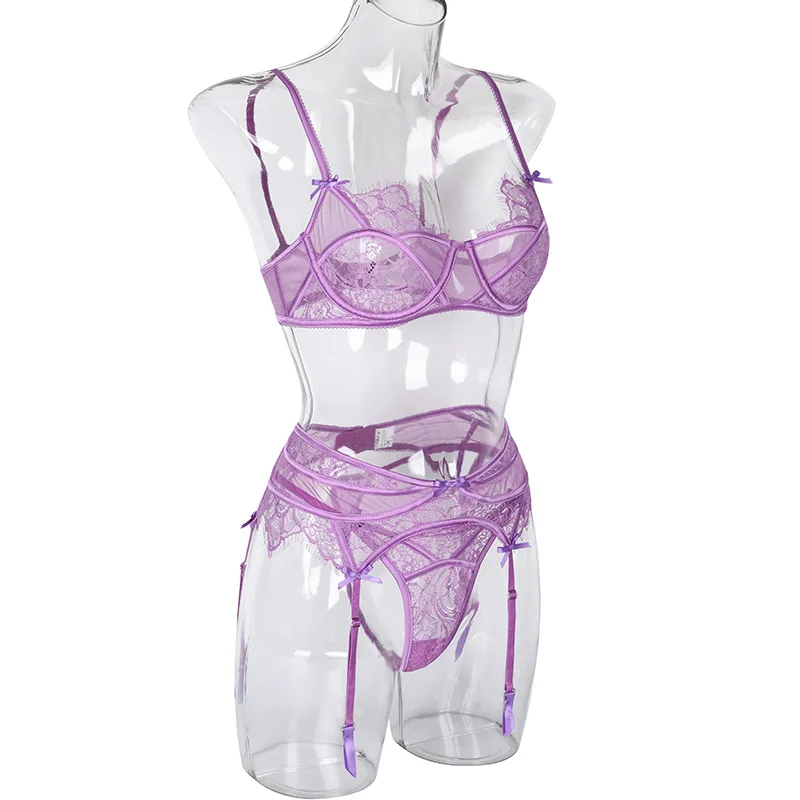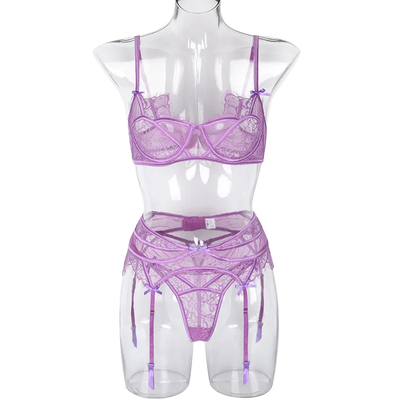 Bow-Knot Bra and Brief 3-Piece Sets Sexy Lingerie Mesh Underwear See-Through Erotic Garters Sensual Lingerie Exotic Outfits