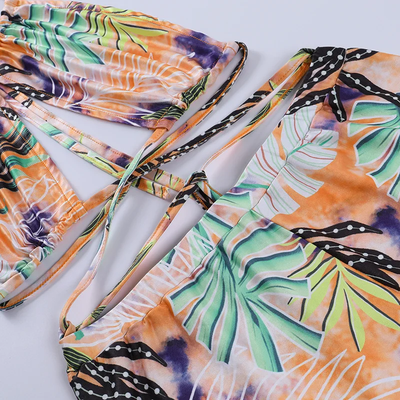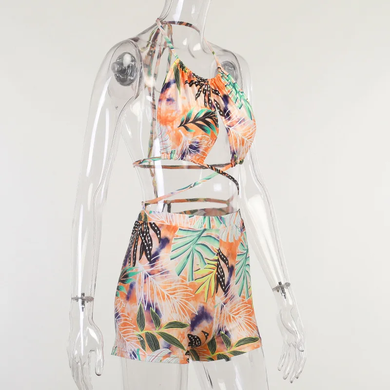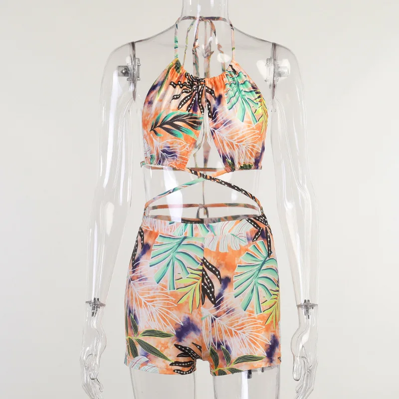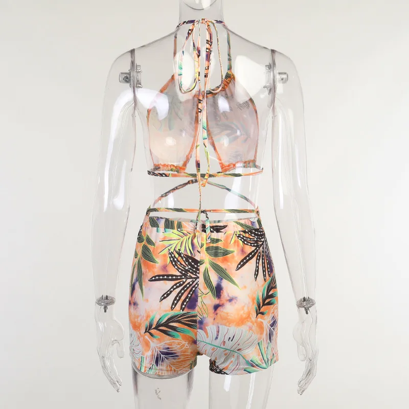 Brazilian Swimsuit 2 Piece Set Sexy Swimwear Halterneck Crop Top And Shorts Suit Swimsuits Beachwear Summer Vacation Outfits