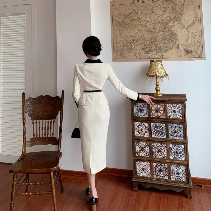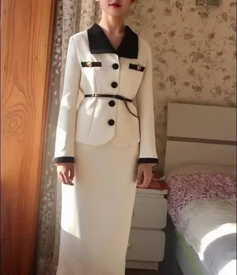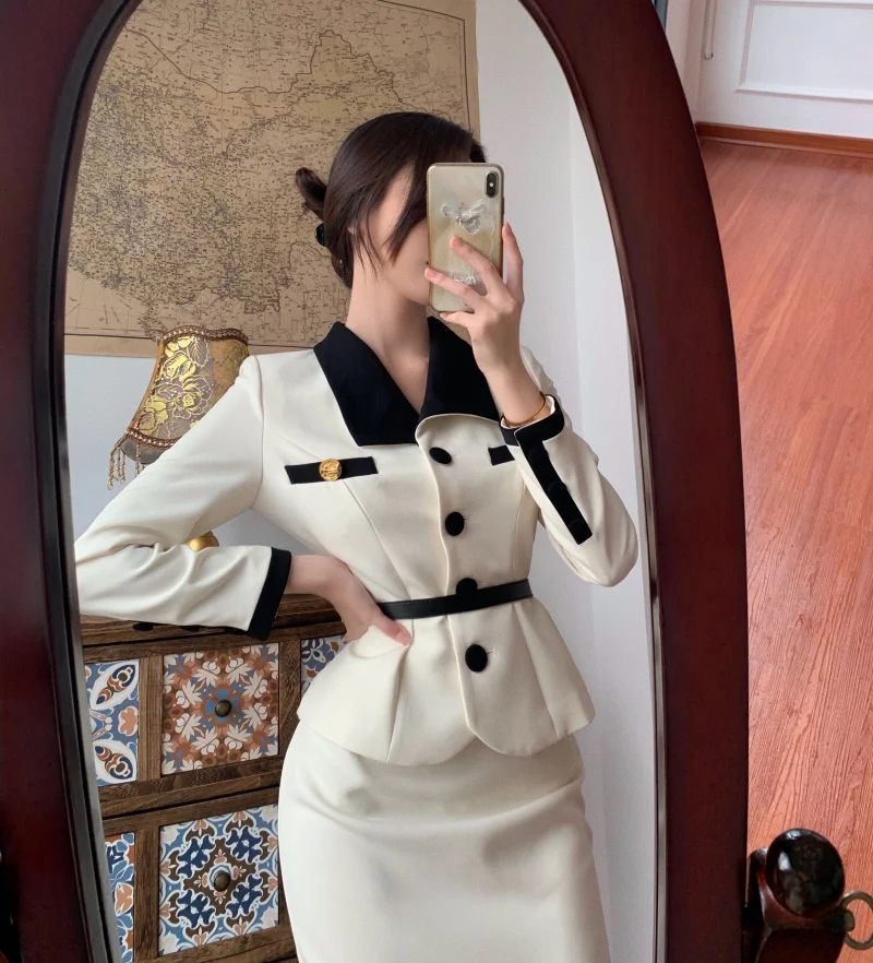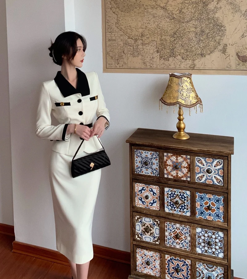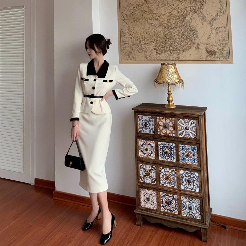 Fashion Suit Women's Winter New Temperament Color Matching Blouse + High Waist Half-Length Skirt Two-Piece Sets