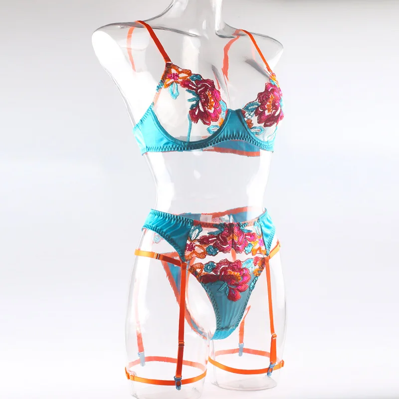 Floral Valentine Lingerie 4-Piece Underwear Seamless Bralette Underwire Push Up Underwear Embroidery Sensual Bilizna Exotic Sets