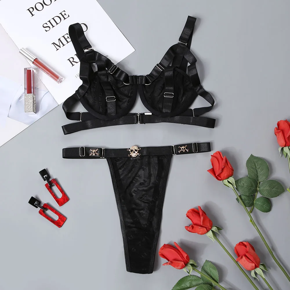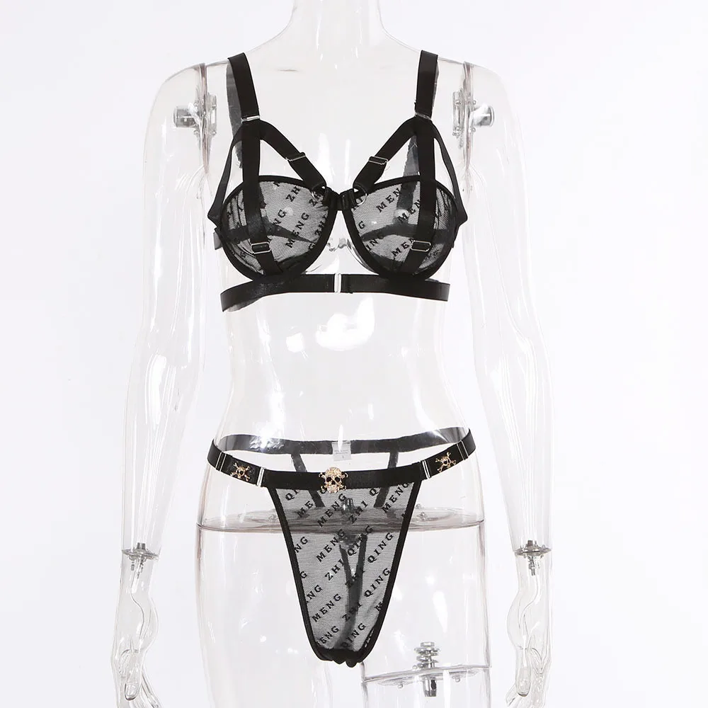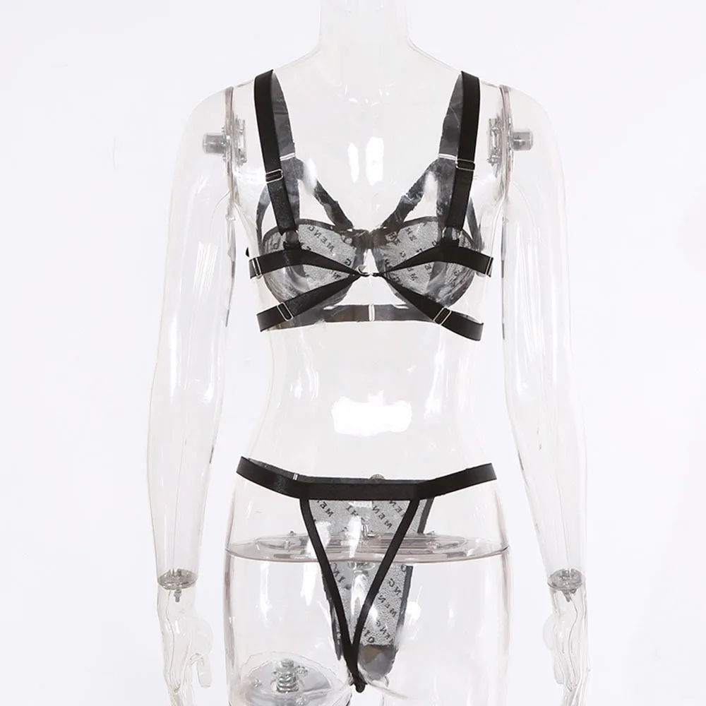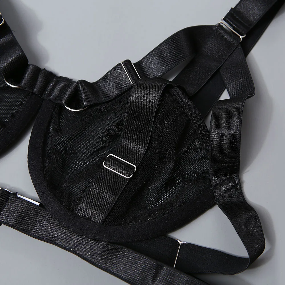 Gothic Patchwork Bra and Brief Sets Sexy Lingerie Mesh Underwear See-Through Erotic Garters Sensual Lingerie Exotic Outfits